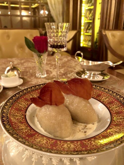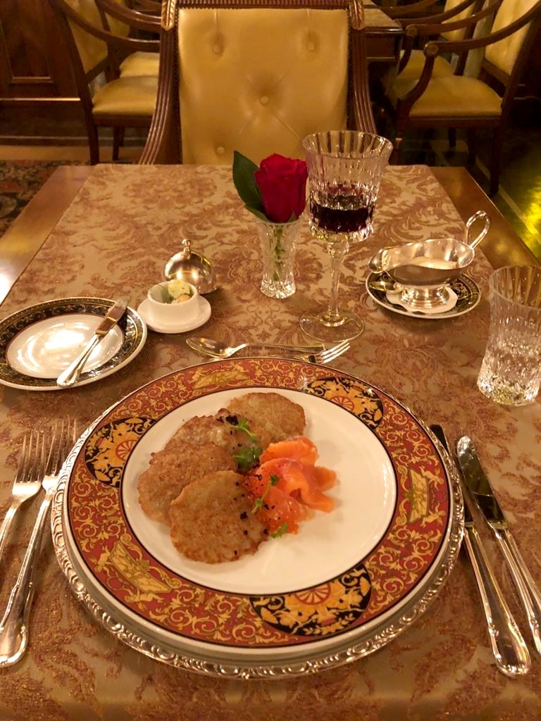 Mon coup de cœur à Vilnius fut clairement le restaurant de l’Hôtel Imperial. Pour tout vous dire, j’ai fini là vraiment par hasard : mon bus arrivant à Vilnius assez tard, il m’a fallu trouver où manger un lundi soir à passé 21h. Et le seul endroit que j’ai trouvé, c’était ce restaurant, qui s’est révélé être une petite pépite. Du cadre grandiose à la carte mettant en avant les spécialités historiques de Lituanie, j’ai tout aimé dans ce restaurant, qui doit être parfait pour une soirée en amoureux.