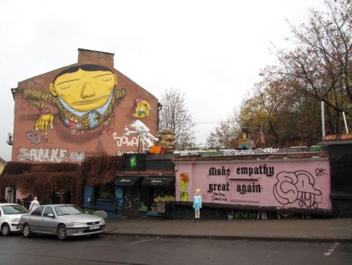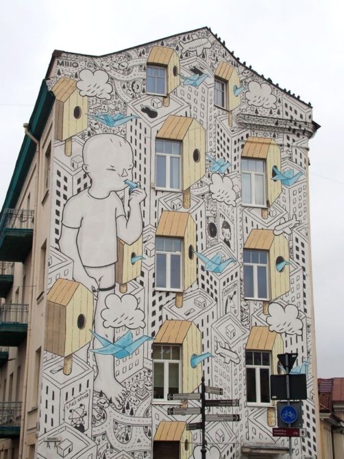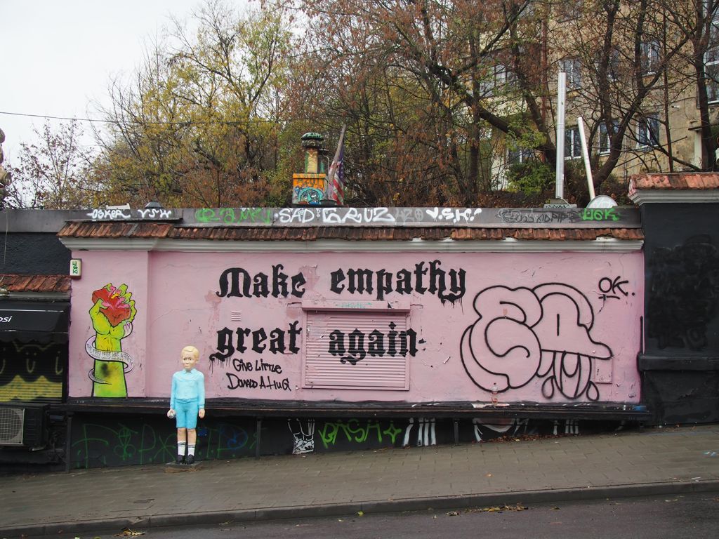 C’est la rue Pylimo qui accueille la plus grande concentration de street art. C’est ici que se trouvait la fameuse fresque de Trump et Putin s’embrassant, qui avait beaucoup fait parler d’elle, mais celle-ci avait malheureusement été recouverte lors de ma visite. Il parait qu’elle réapparait parfois, donc ouvrez quand même l’oeil !
