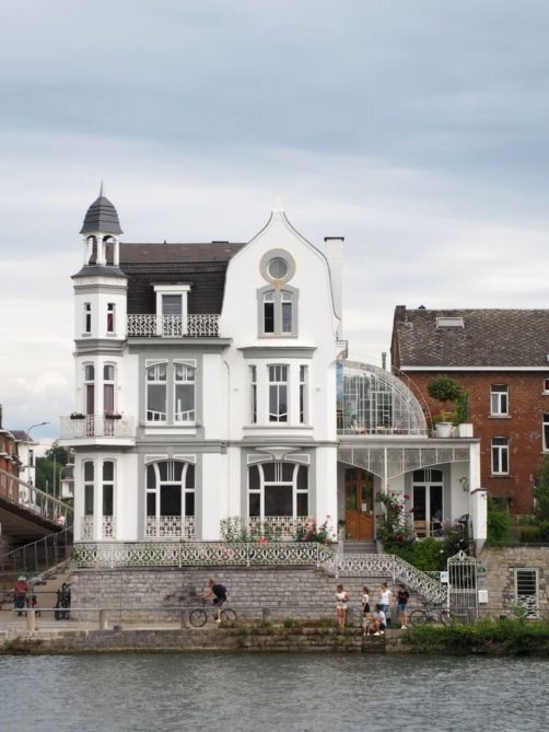 Mais ne voyant pas de Namourette arriver, nous décidons de continuer notre balade en longeant la Meuse côté Jambes pour retourner vers le Grognon, en profitant également de jolies vues sur la Citadelle. On y découvre aussi de jolies maisons, dont une qui nous a vraiment tapé dans l’œil, juste à côté de la passerelle l’Enjambée : la Villa Balat, une maison d’hôtes qui devrait plaire aux amateurs d’Art Nouveau – je me suis promise d’y séjourner un jour.