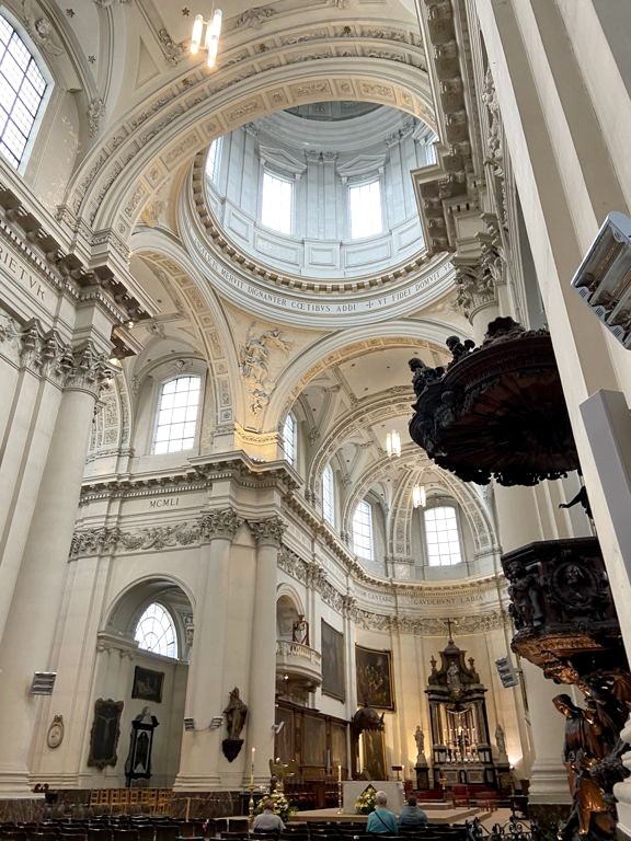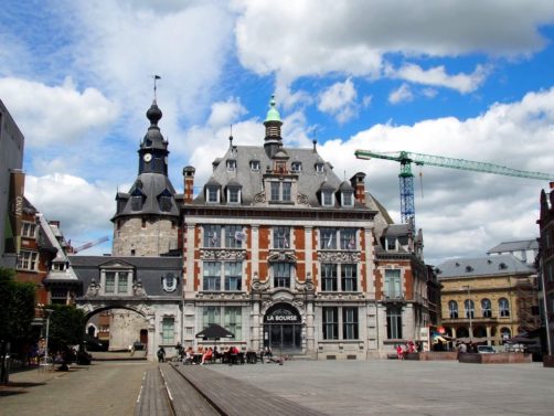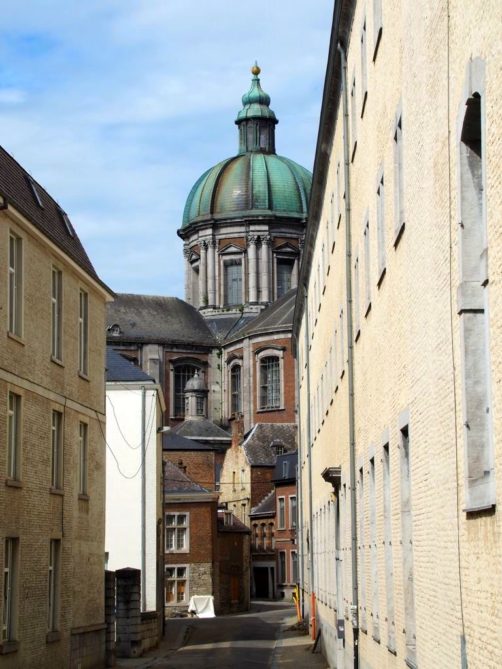 Depuis le Grognon, nous longeons à présent la Sambre avant de prendre la direction de la Cathédrale Saint-Aubain, actuellement en cours de rénovation.