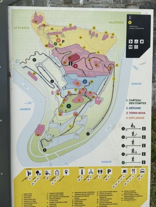 Je ne peux que vous encourager à visiter le centre Terra Nova pour en apprendre plus sur l’histoire (mouvementée) de la Citadelle de Namur, de l’époque romaine au 20ème siècle. Le Centre du Visiteur, interactif, est une bonne introduction mais c’est la visite guidée des souterrains, en mode « sons et lumières », qui offre sans aucun doute le meilleur aperçu de cette énorme construction. Le réseau de souterrains de la Citadelle, datant d’époques variées, a en effet valu à la Citadelle de Namur d’être qualifiée de « termitière de l’Europe » par Napoléon !