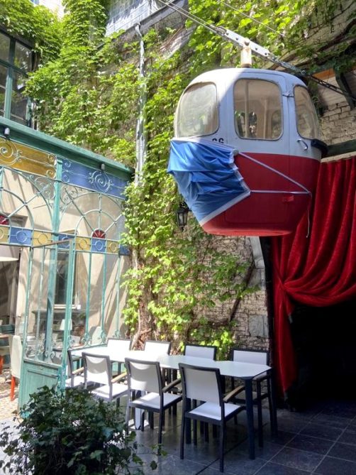 Je vous invite à lire mon article Les restaurants préférés à Namur de 10 blogueurs pour découvrir toutes les bonnes adresses recommandées par les locaux. En ce qui nous concerne, ce jour-là, nous avions décidé d’aller manger au restaurant Fenêtre sur Cour (rue du Président 35), une adresse très populaire auprès des namurois. Le resto possède notamment une très agréable cour intérieure agrémentée d’une des nacelles de l’ancien téléphérique de la Citadelle de Namur (téléphérique qui devrait d’ailleurs apparemment bientôt revoir le jour !).