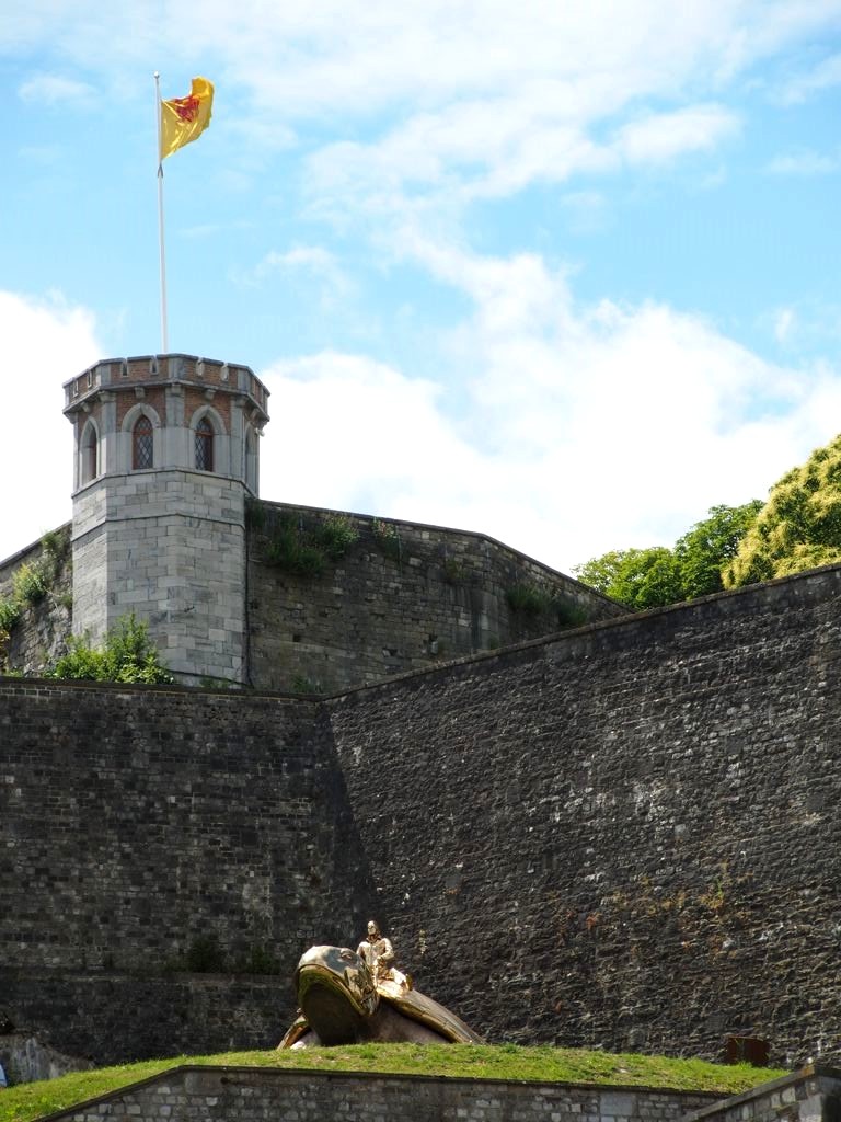 Après la visite de Terra Nova, on continue en montant jusqu’au point le plus haut de la Citadelle, l’Esplanade et le Théâtre de Verdure, puis, encore un peu plus haut le Château de Namur. Cette partie de la citadelle est plus récente, et le « château » est en réalité un hôtel-restaurant, qui est aujourd’hui le fief de l’Ecole d’Hôtellerie de Namur, très réputée en Belgique. Cerise sur le gâteau : notre visite fin juin coïncidait parfaitement avec la période de floraison des roses de la magnifique Roseraie du Château.