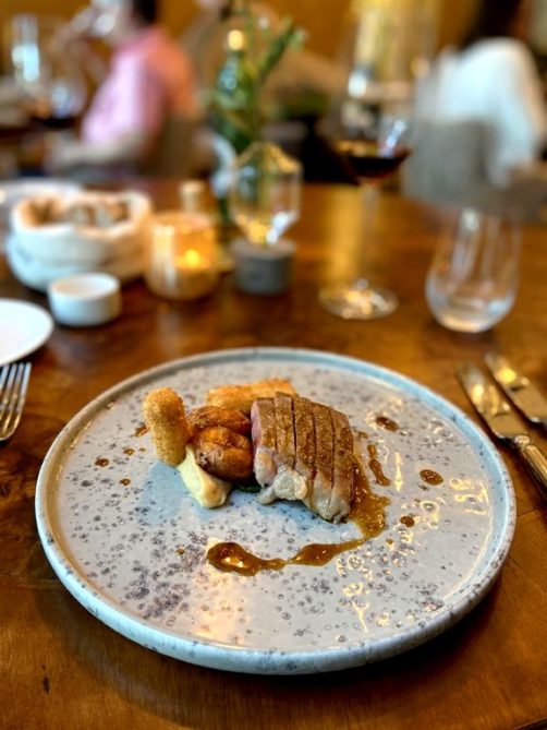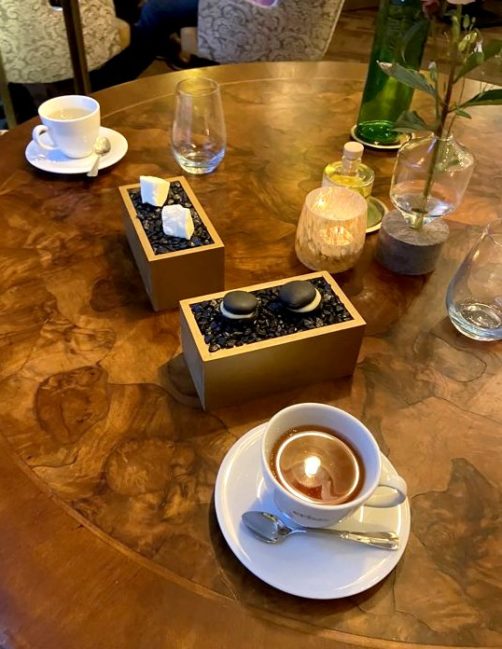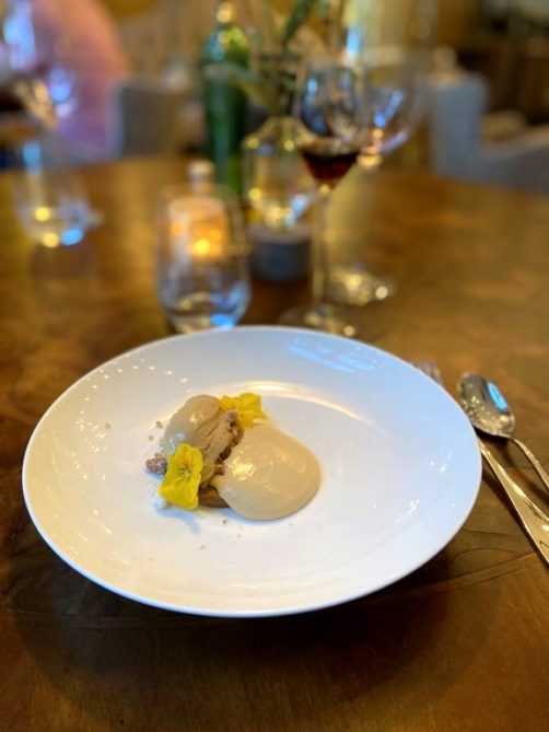 Nous avons dégusté le menu en 4 services, dont les quantités étaient parfaites, accompagné d’une très belle sélection de vins européens présentés par la sommelière du restaurant. Au menu : St Jacques et anguille – carotte – citron – sarrasin (mon coup de cœur du repas) ; sole de Douvres, pois, sauce hollandaise et chorizo croquant (hyper gourmand !) ; short rib de boeuf – jus de céleri rave – salicorne – beignet de pomme de terre (plus classique mais très bien exécuté) ; et pour finir avec une note sucrée un joli dessert café, caramel et noisette.