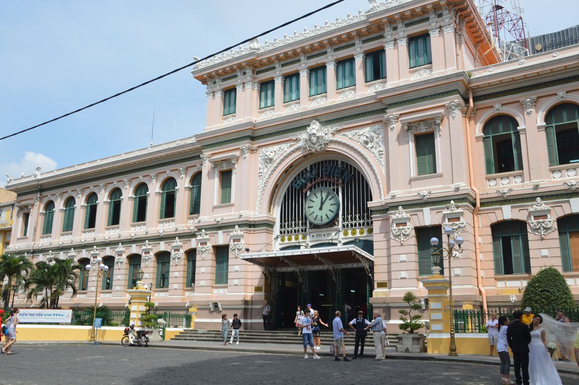 Le musée était le point de départ de notre petit parcours dans la ville, et nous remontons maintenant vers le District 3 en passant par le Reunification Palace (ancien palais présidentiel), la Cathédrale Notre-Dame et la poste française, avec un petit arrêt lunch au topissime restaurant Nha Hang Ngon (voir les bonnes adresses).