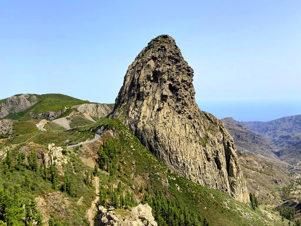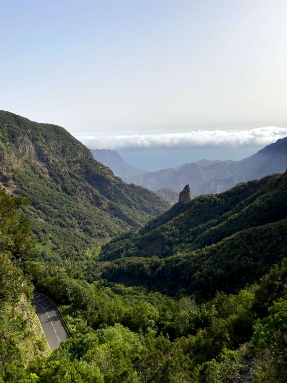 L’autre route qui mène de San Sebastian au Garajonay, la route GM-2, est particulièrement connue pour ses points de vue (miradores). Ne ratez absolument pas le Mirador de Los Roques / Mirador Morro de Agando, un ensemble de petits points de vue le long de la route qui offre des vues incroyables sur d’anciennes formations volcaniques (formées par du magma), au loin, sur Tenerife et le volcan Teide. C’est magique.