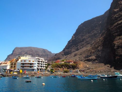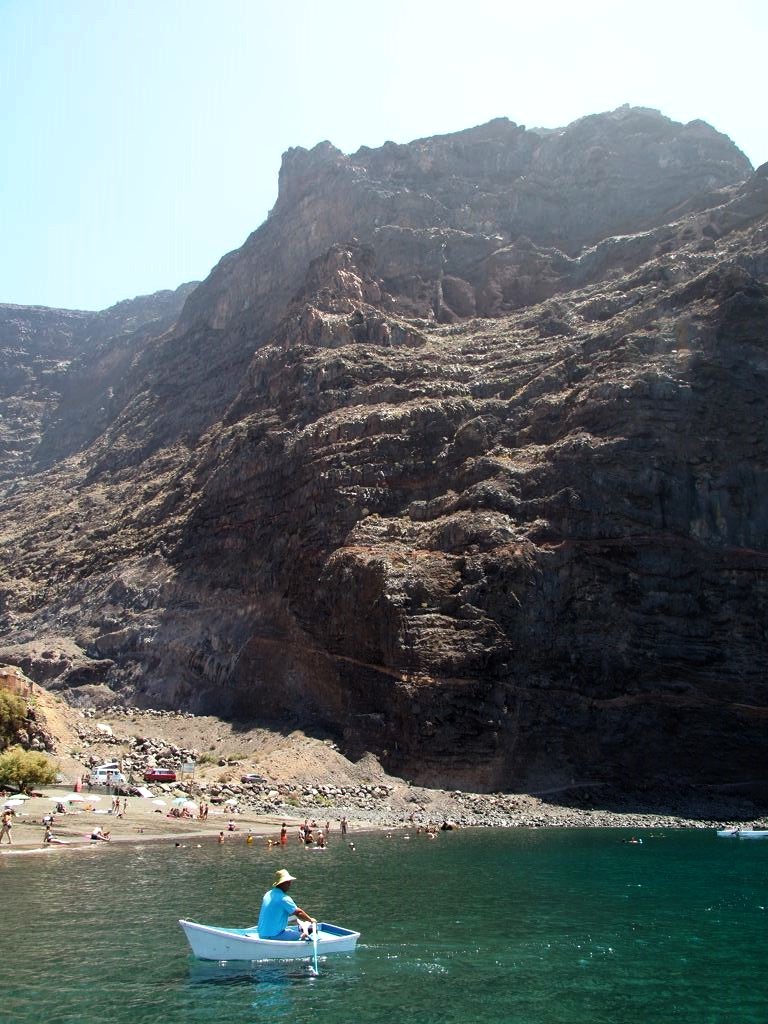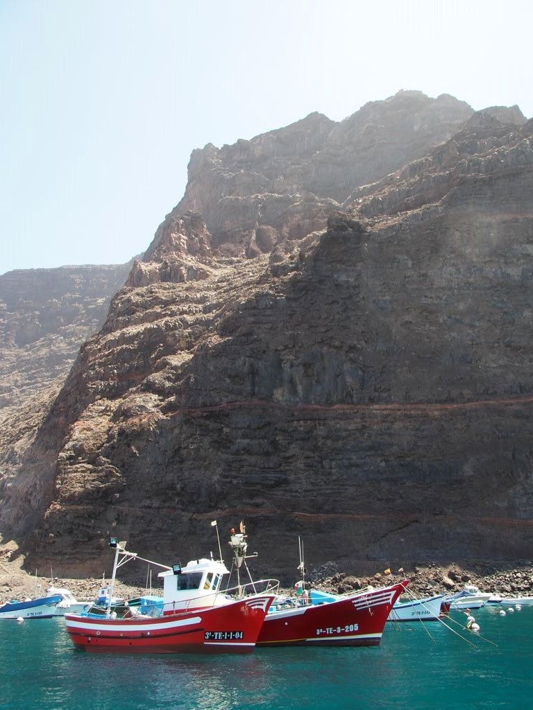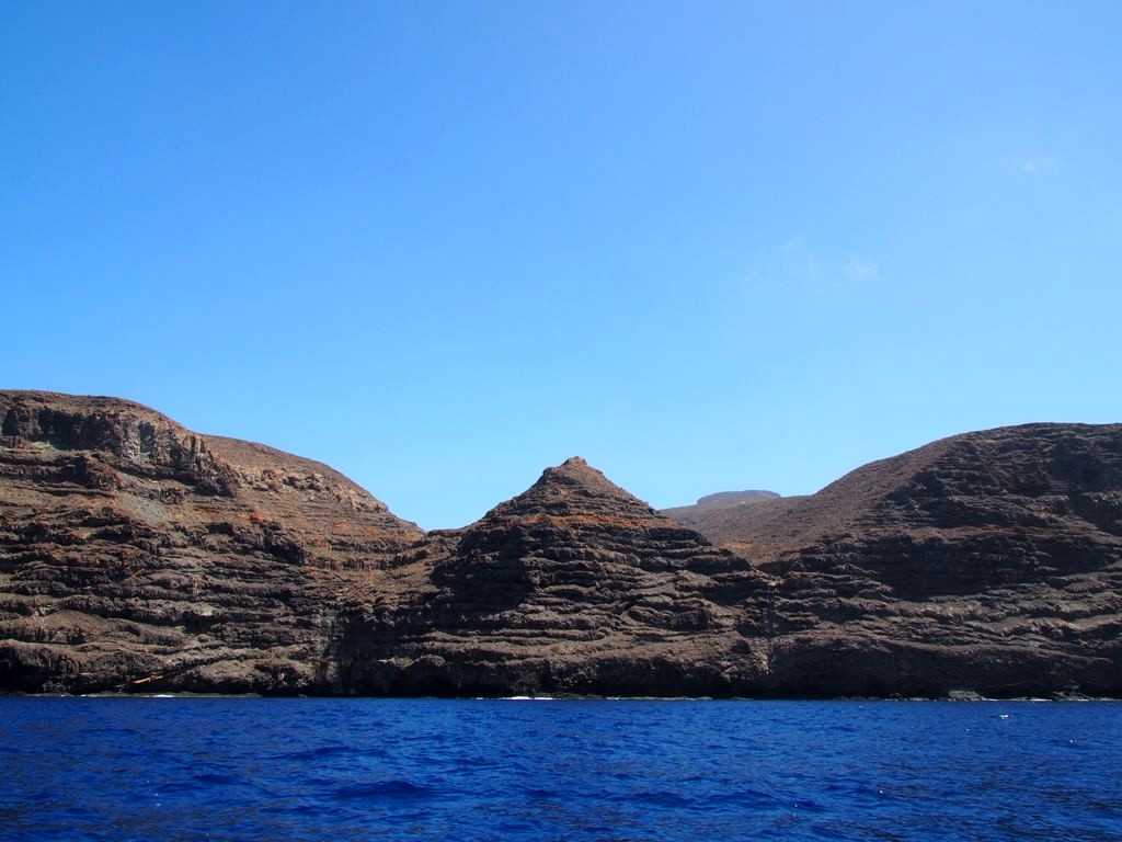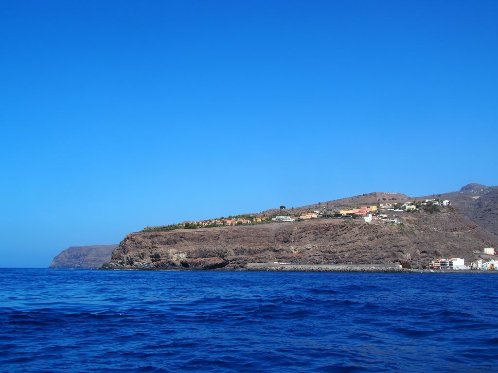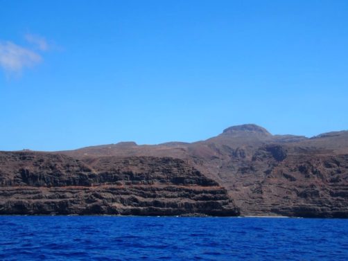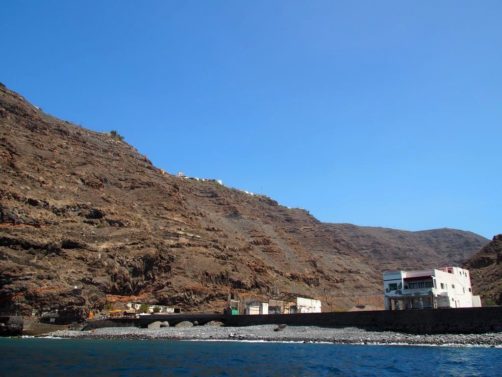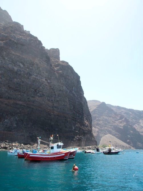 Après ça, nous avons longé la côte jusqu’à Valle Gran Rey, où nous verrons même une raie. La côte très abrupte entre Playa de Santiago et Valle Gran Rey est très impressionnante. Certaines vallées possèdent de petites plages et on peut aussi apercevoir des ruines d’anciennes usines de conserverie.