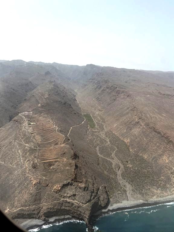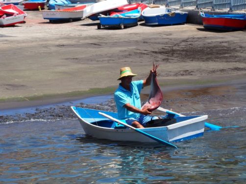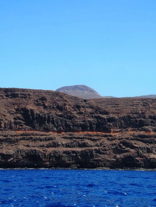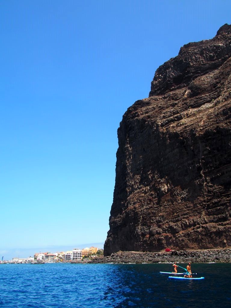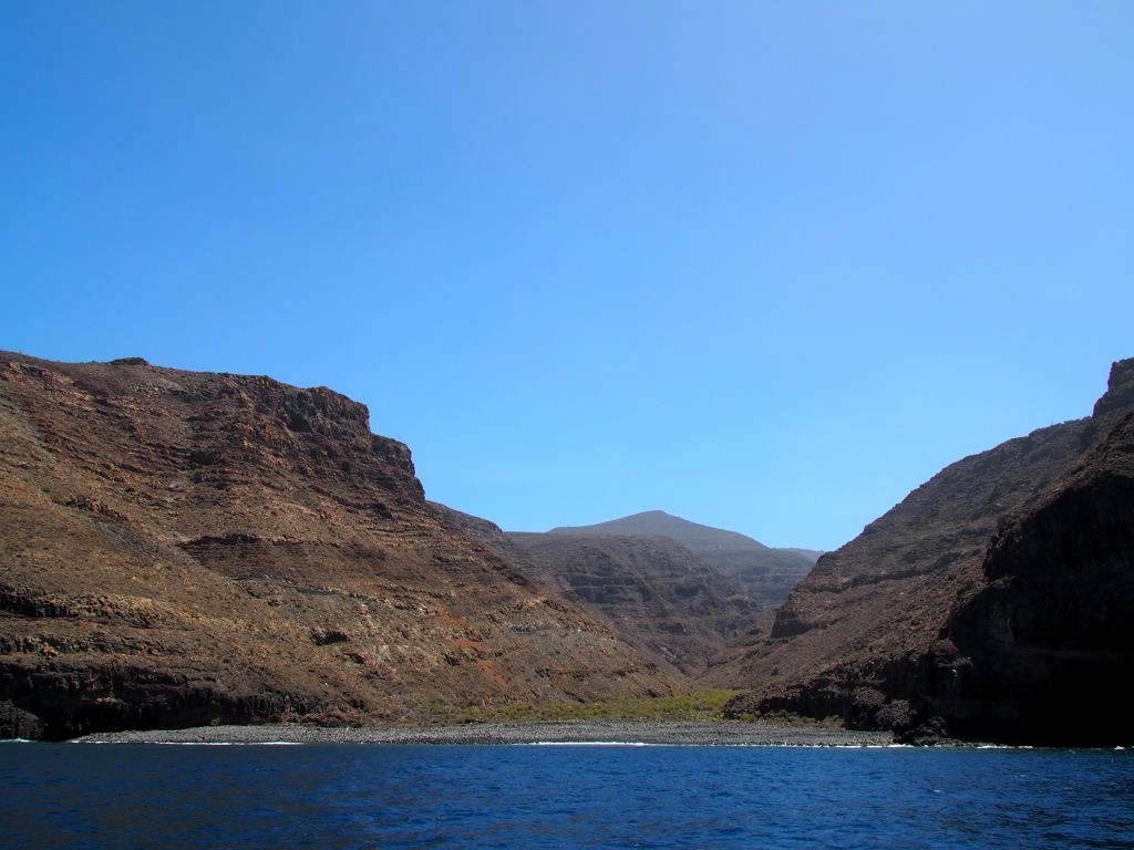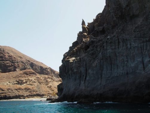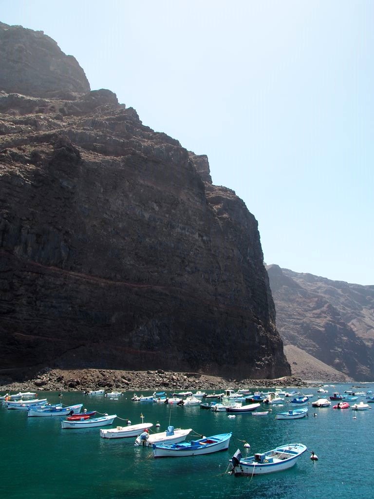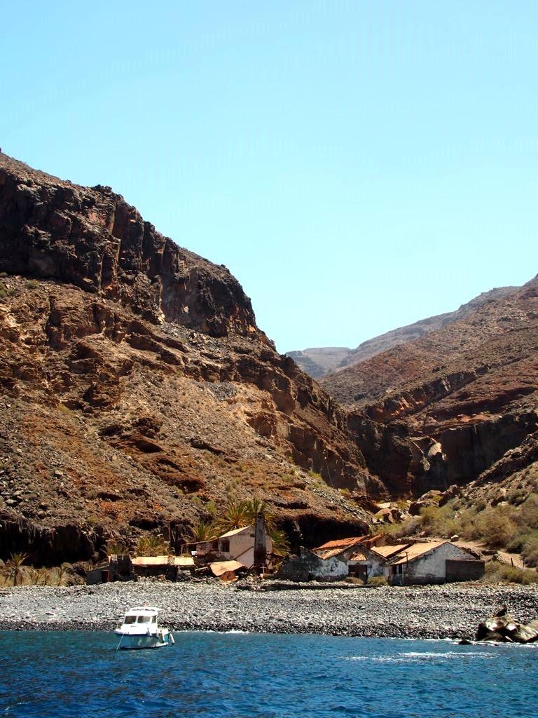 Après ça, nous avons longé la côte jusqu’à Valle Gran Rey, où nous verrons même une raie. La côte très abrupte entre Playa de Santiago et Valle Gran Rey est très impressionnante. Certaines vallées possèdent de petites plages et on peut aussi apercevoir des ruines d’anciennes usines de conserverie.
