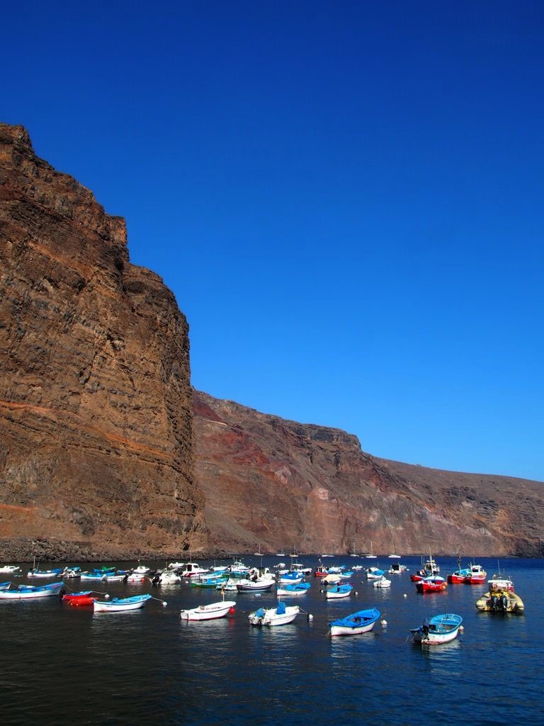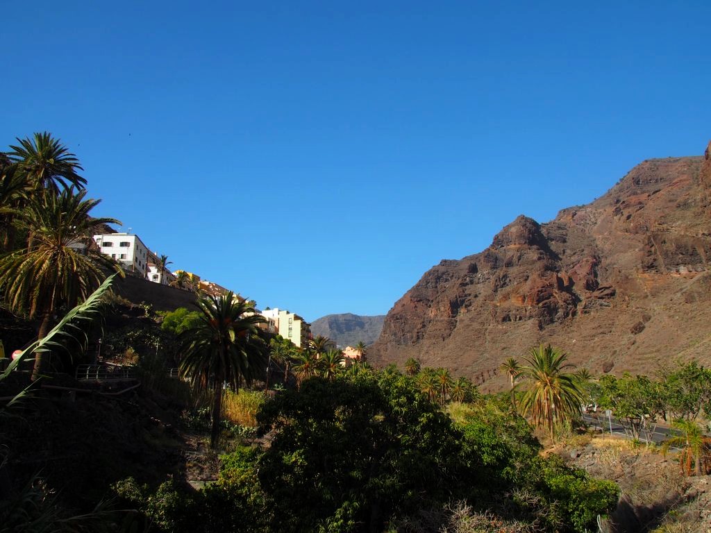 Si l’on surnomme souvent La Gomera l’île verte des Canaries, vous risquez bien de vous demander pourquoi à votre arrivée puisque la première chose que vous verrez de cette petite île ronde seront ses côtes arides, faites de falaises volcaniques entrecoupées de canyons et vallées. On cherche le vert !