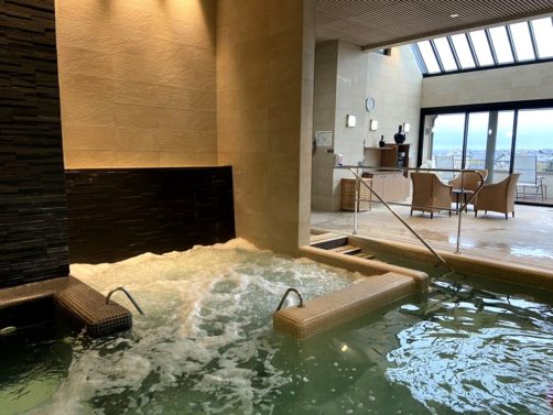 L’hôtel possède également un beau petit espace spa avec piscine à jets, hammam, solarium (terrasse orientée plein sud – si vous avez plus de chance avec le soleil que nous !), que nous avons eu pour nous seuls de bon matin. Il est aussi possible de réserver des soins dans leur espace spa.