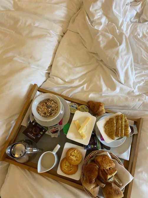 Dans cet hôtel, nous avons choisi la formule room service pour le petit-déjeuner, que nous avons royalement mangé depuis notre lit.