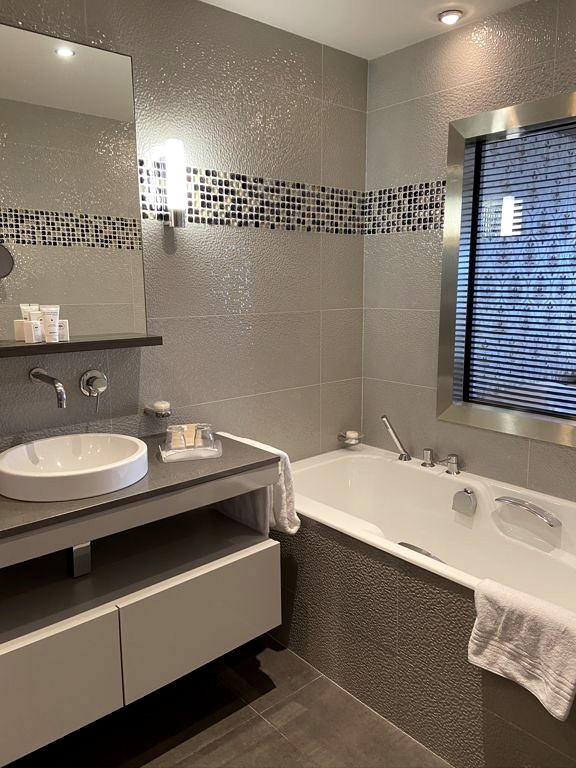 Dans la salle de bain, vous retrouverez la marque des « Thermes Marins de Saint-Malo », qui possède toute une gamme très sympa de cosmétiques et de produits pour le corps. La chambre était très spacieuse et sa décoration moderne et épurée nous a beaucoup plu. Profiter d’un tel cadre n’a fait que renforcer le côté cocooning de ce beau séjour.