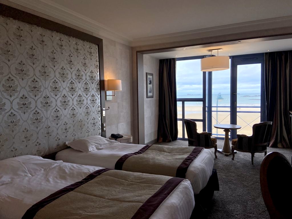 Un des avantages de cet hôtel est qu’il se situe à mi-chemin entre la vieille-ville de Saint-Malo et les Thermes Marins (comptez 10 bonnes minutes dans chaque direction, sur la digue ou sur la plage à marée basse). C’est donc le choix parfait pour ceux qui voudraient combiner des soins de thalasso avec un citytrip à Saint-Malo. C’est tout à fait faisable avec des demi-journées de soin, comme nous l’avons fait.