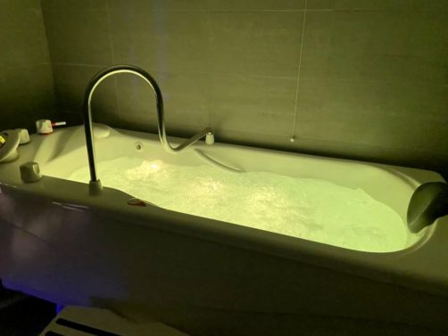 - Bain Jets (avec ou sans algues) : on commence avec un grand classique, toujours bien sympathique, le bain à jets. Vous êtes immergés dans une baignoire à bulles, avec luminothérapie, dans une pièce plongée dans le noir pour votre relaxation. Il y a deux variantes : soit vous effectuez ce soin avec des algues, soit avec des huiles essentielles de votre choix.