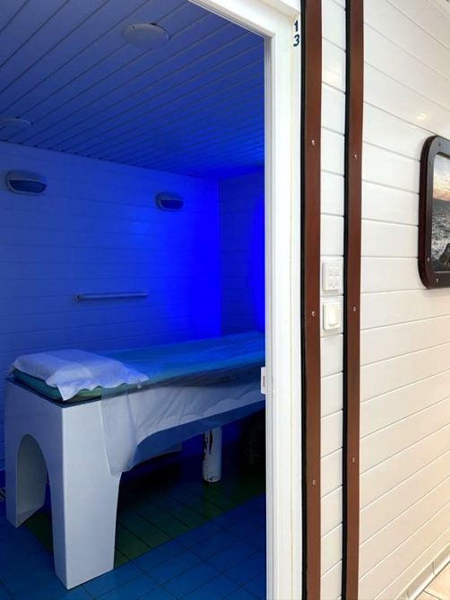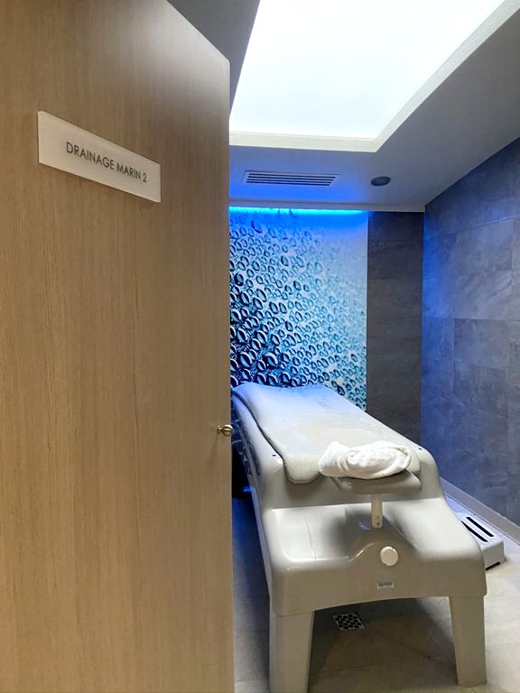 - Drainage Marin : il s’agit d’un hydromassage aérien sur tout le corps avec un grand jet d’eau de mer chaude. C’est un peu comme la douche sous-marine, sauf qu’ici on est allongé sur une table et non immergés dans l’eau (et j’ai mieux aimé cette configuration !).