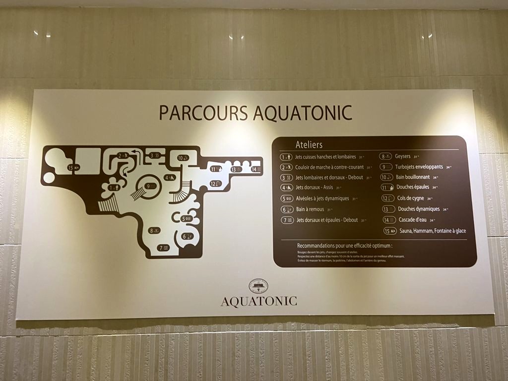 - Douche Sous-Marine : j’ai été un peu moins fan de ce soin, car je n’ai jamais trouvé comment m’installer confortablement ! Il s’agit d’un puissant hydromassage sous-marin : durant la séance, un hydrothérapeute vous masse sous l’eau différentes parties du corps avec un jet. Ce massage va drainer et décontracter le corps.
