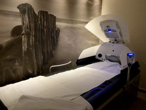 - Affusions dynamiques : les affusions dynamiques sont en quelque sorte le modelage sous affusions mais sans hydrothérapeute. Ici, vous restez seul couché sous la pluie d’eau de mer, avec différents effets de jets durant la séance de 15 minutes, pour un effet lui aussi très relaxant.