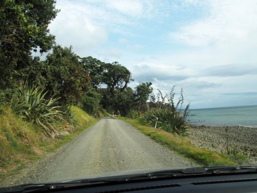 « New Zealand Roads are different », le slogan qu’on voit partout sur les routes n’est pas une blague : cette route n’est pas évidente, surtout la dernière partie qui est en gravier, et c’est bien pour cela que cette région reste si méconnue (il y a d’ailleurs un petit gué à franchir sur la fin de la route entre Port Jackson et Fletcher Bay, voir Google Maps. Il est traversable sans 4×4 mais à éviter en cas de forte pluie).