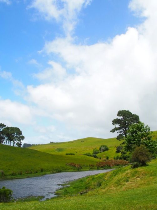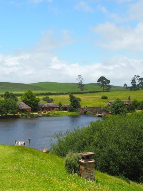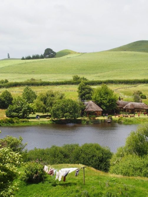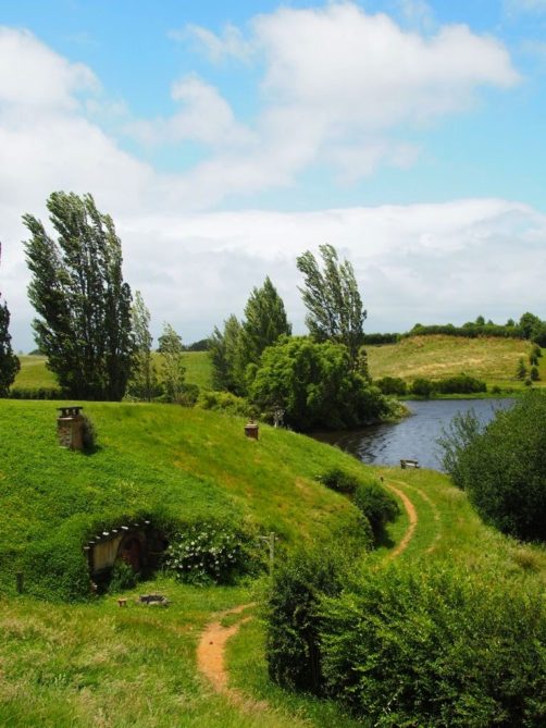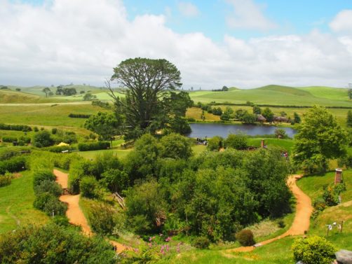 Si les paysages verdoyants ne manquent pas en Nouvelle-Zélande, ce sont les collines et prairies de la région de Waikato que Peter Jackson a choisi pour héberger la Comté (The Shire en anglais), le pays des Hobbit, et les petites maisons/terriers de hobbit caractéristiques qui ont été créées pour le film ont été conservées pour créer le Hobbiton Movie Set à la fin du tournage de la trilogie du Hobbit.
