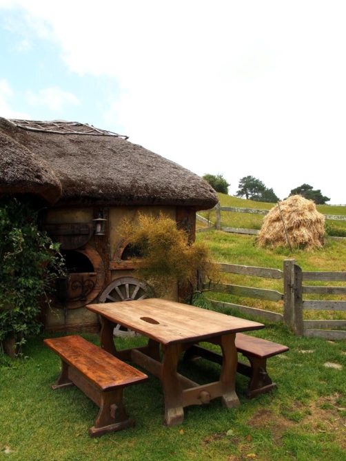 Un autre petit détail intéressant que l’on remarque vite est que certaines maisons sont à taille d’hobbit (les hobbits sont plus petits que les humains) alors que d’autres sont à taille d’humain. C’est grâce à cela que vous pouvez savoir à quoi a servi chaque endroit : les premières ont été utilisées pour les vues panoramiques du village, alors que celles à la taille des acteurs ont été utilisées pour les gros plans !