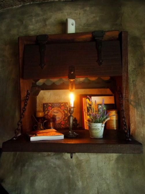 Cet hébergement durable, créé avec des matériaux naturels, a été construit il y a 20 ans par le père de la propriétaire actuelle. L’endroit est très cosy et plein de chouettes détails. Il n’y a par contre pas d’électricité, ce qui veut dire : feu de bois (avec un four vieux de 140 ans !) pour faire cuire notre repas du soir, et un éclairage à la bougie uniquement (mais quelle atmosphère !) le soir.