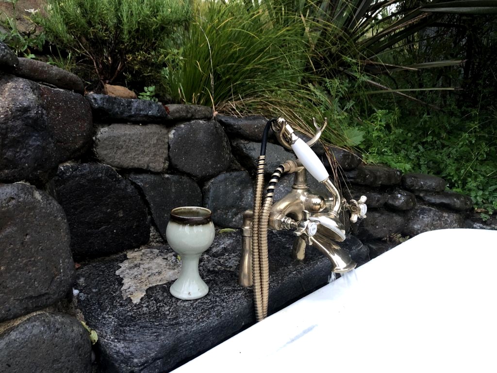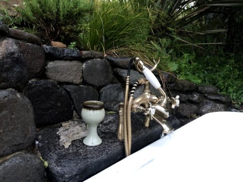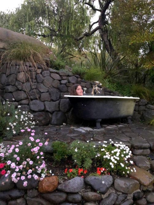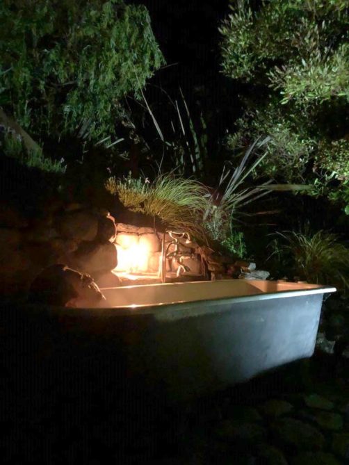 A côté de l’espace de vie se trouvait l’espace salle de bain, avec une partie en intérieur (les toilettes sèches dans un premier espace et la douche dans un second) et une partie en extérieur avec une jolie baignoire (mon petit plaisir, au cas où vous ne seriez pas encore au courant !). Une expérience que nous ne sommes pas prêts d’oublier !