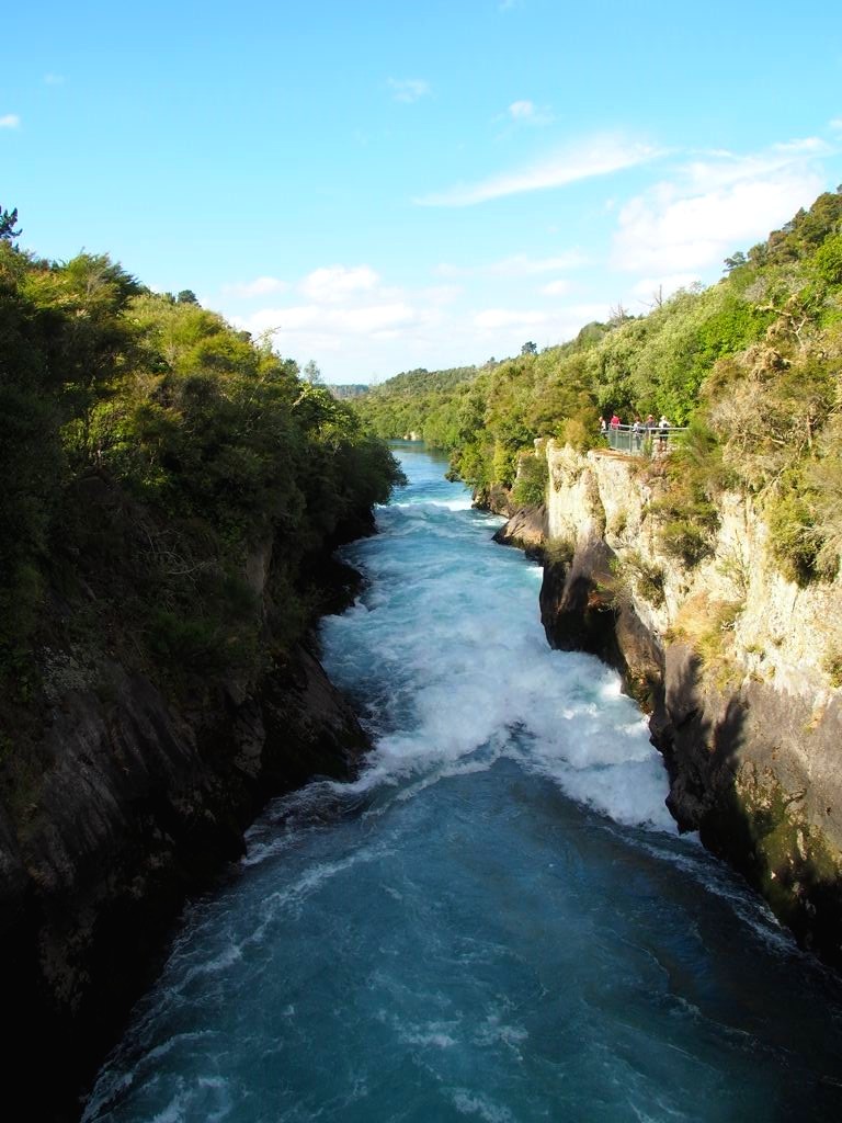 Un peu plus loin sur le Waikato, se trouve aussi un autre endroit populaire mais cette fois non naturel, les Aratiatia Rapids. Ces rapides sont créées par un barrage qui s’ouvre plusieurs fois par jour. Pour les voir, il faut donc venir à des moments spécifiques (lors de notre visite c’était 10h-12h-14h-16h mais vérifiez avant de venir pour voir si ça n’a pas changé). Si c’est un endroit populaire, c’est aussi car c’est l’un des lieux de tournage du Hobbit.