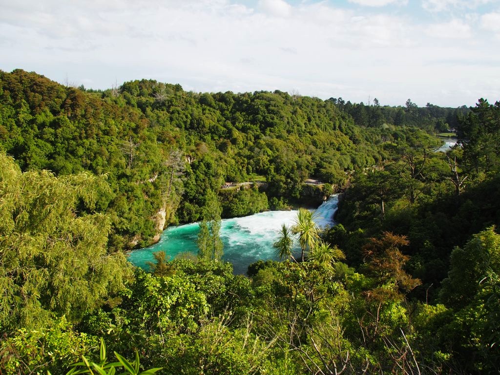Nous nous sommes contentés du Huka Falls Lookout qui permet d’avoir un point de vue sur les rapides, mais si vous avez le temps il y a également des sentiers qui permettent de découvrir d’autres points de vue. C’est sensé être bondé, mais comme on voit moins bien les couleurs en fin de journée, il n’y avait quasiment personne lorsque nous y sommes allés.