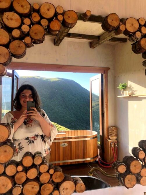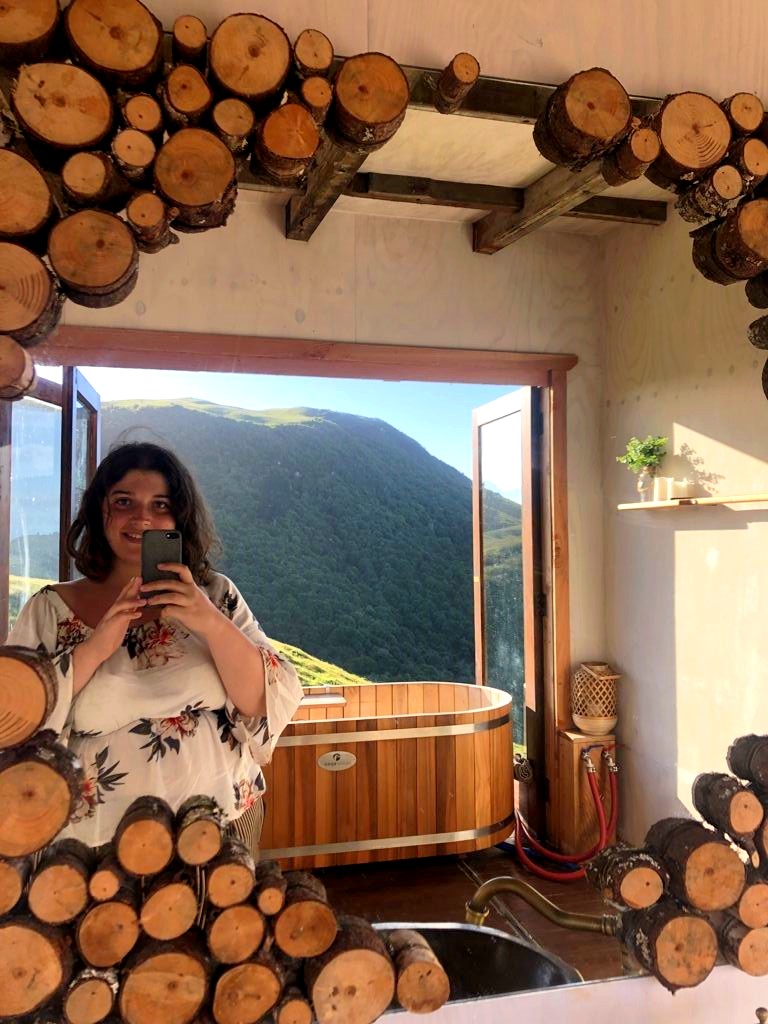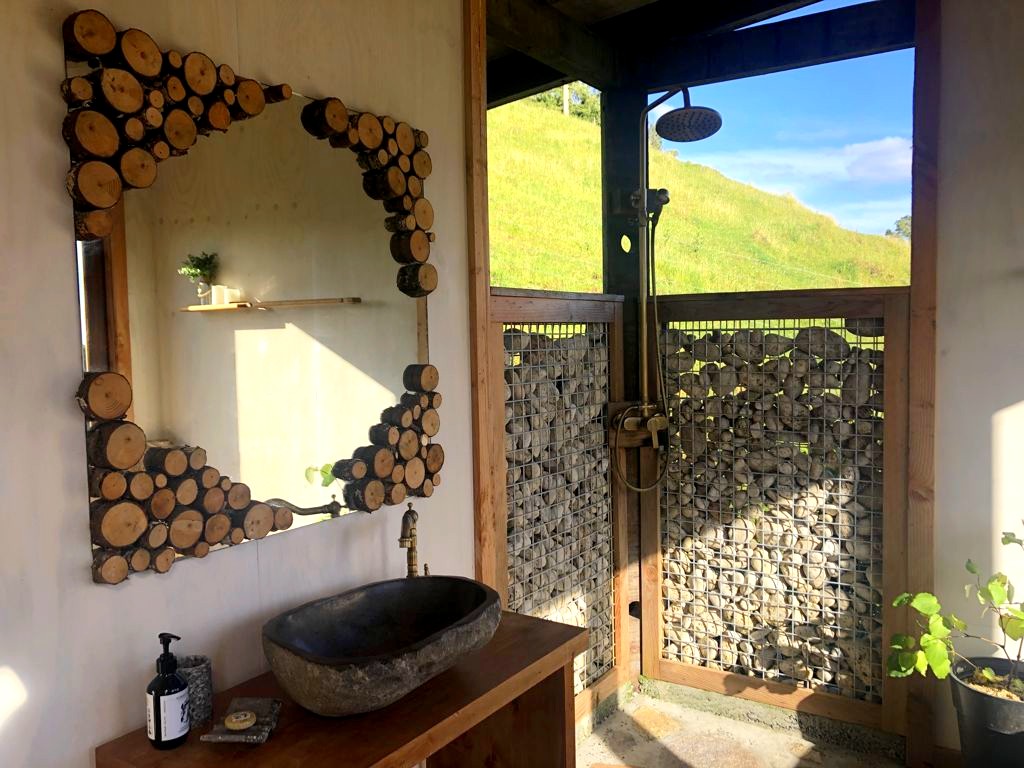 Au niveau des équipements, on avait deux pièces intérieure : une chambre et une salle de bain avec une douche semi-extérieure et bain que l’on pouvait sortir sur la terrasse extérieure via un système ingénieux une fois les portes fenêtres ouvertes ! Et au milieu, nous avions une grande cuisine ouverte sur un grand deck parfait pour prendre le soleil, ou regarder les étoiles durant la nuit. Un lieu vraiment magique !