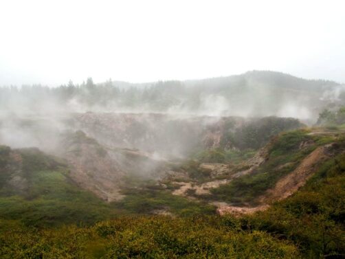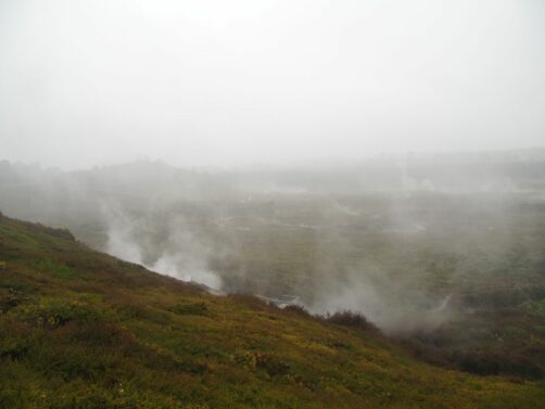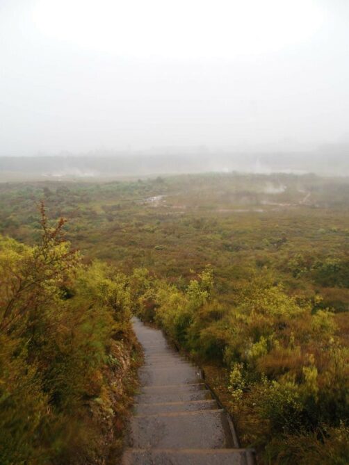 J’avais lu qu’il valait mieux visiter le site par météo couverte pour mieux voir les fumerolles, on avait donc décidé de caler la visite au pire moment niveau météo. Ambiance garantie, mais on s’est quand même pris une bonne grosse pluie sur la fin du parcours : c’était une véritable apocalypse, je n’ai donc pas de photos sur la fin du parcours et je peux vous dire que ma veste a mis deux jours à sécher…