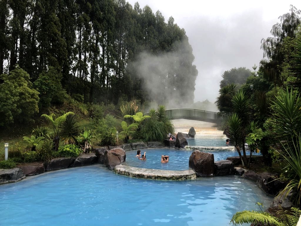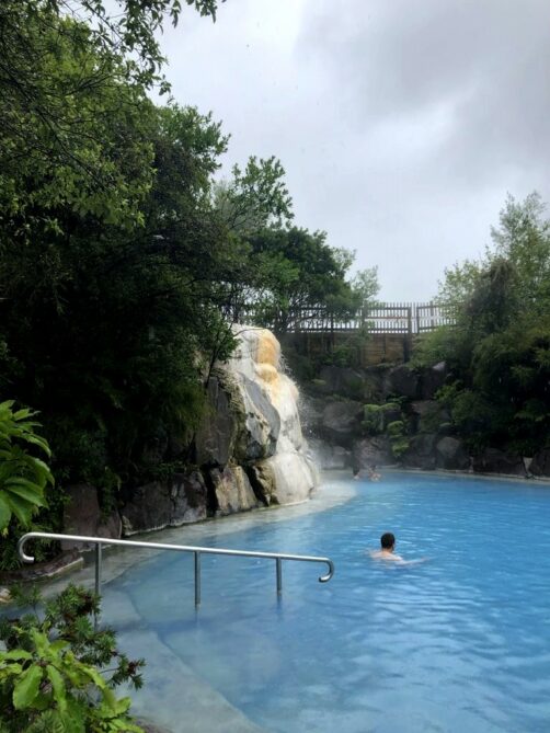 Pour se réchauffer après le déluge des Craters of the Moon, nous avons été faire trempette dans les hot springs de Taupo, les Wairakei Terraces Thermal Pools. J’adore aller dans ce genre d’endroit quand il pleut !