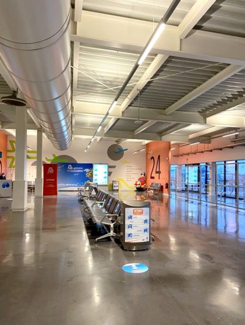 L’expérience Premium commence dès l’arrivée à l’aéroport de Charleroi ! Un comptoir d’enregistrement dédié permet d’éviter de faire la file (bien que l’aéroport était presque quasiment vide ce jour-là – contrairement à ce que les médias voulaient faire croire), et après un rapide passage à la sécurité, nous avons pu nous relaxer dans le Lounge Air Belgium en attendant notre vol.