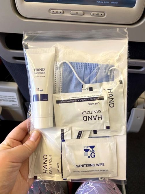 - un kit sanitaire est remis à chaque passager. Celui-ci comprend un masque chirurgical, des gants, un gel hydro-alcoolique et des lingettes pour les mains.