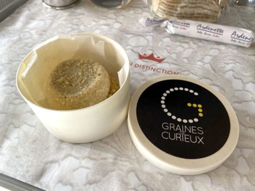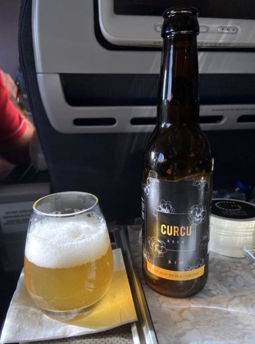 On a commencé avec un carpaccio en entrée. Côté boissons, on retrouve notamment du vin belge du Château de Bioul et aussi la Curcu, une très sympathique bière bio au curcuma, brassée à Binche. Enfin une compagnie qui privilégie réellement les petits producteurs de son pays, je n’avais jamais vu ça !
