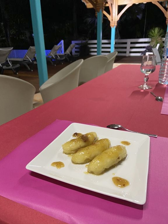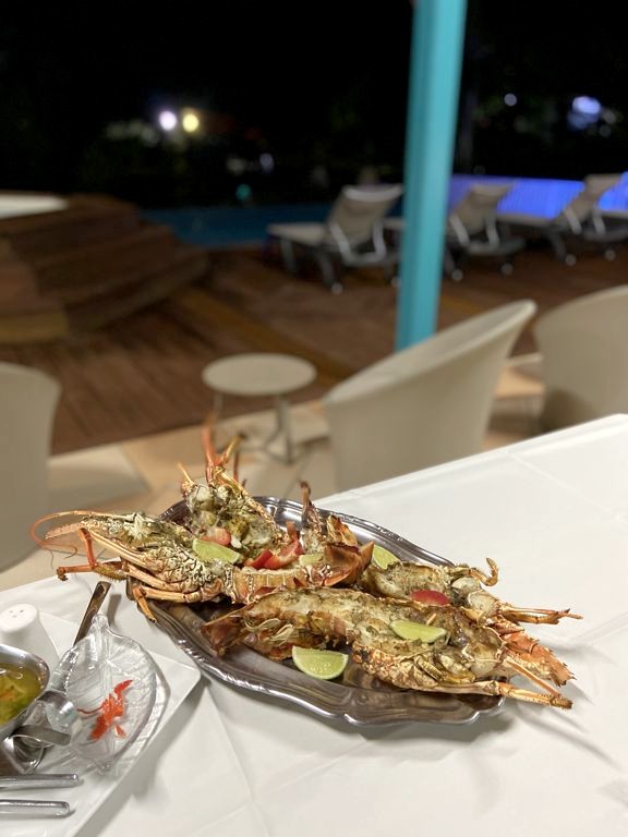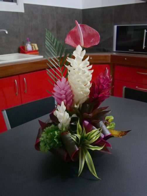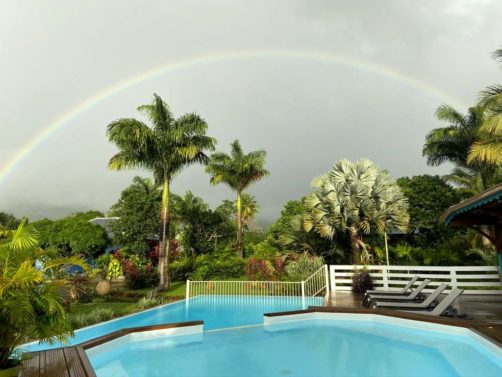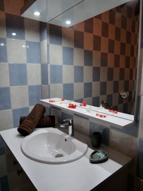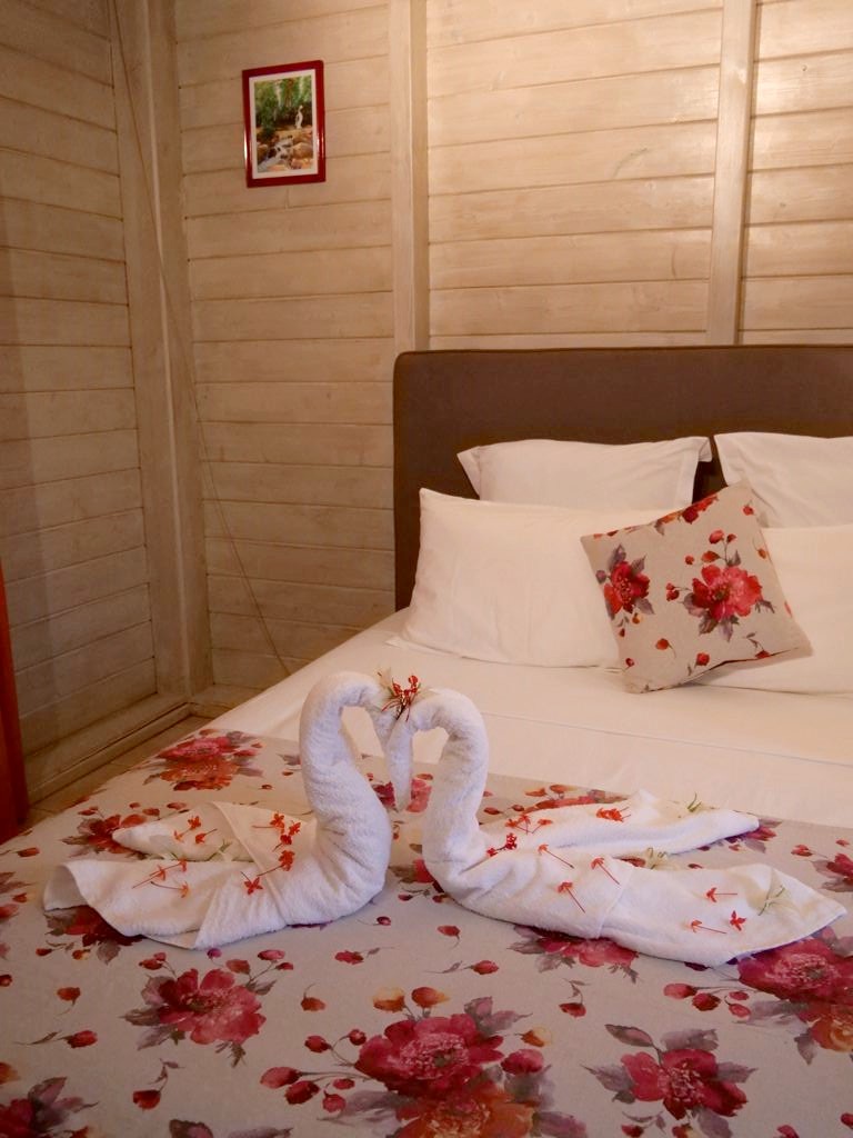 Bref, un superbe endroit où vous serez accueillis par une famille très sympathique et aux petits soins – de magnifiques compositions florales faites avec les fleurs du jardins vous attendront notamment dans chaque bungalow. Vous y trouverez aussi une piscine commune et il est également possible de manger sur place (sur demande) : chaque soir, nous avons eu droit à un très bon repas préparé maison (avec même un festin de langoustes le dernier soir !). Et le matin, le petit-déjeuner donne l’occasion de goûter aux différents fruits du jardin. Que demander de plus ?