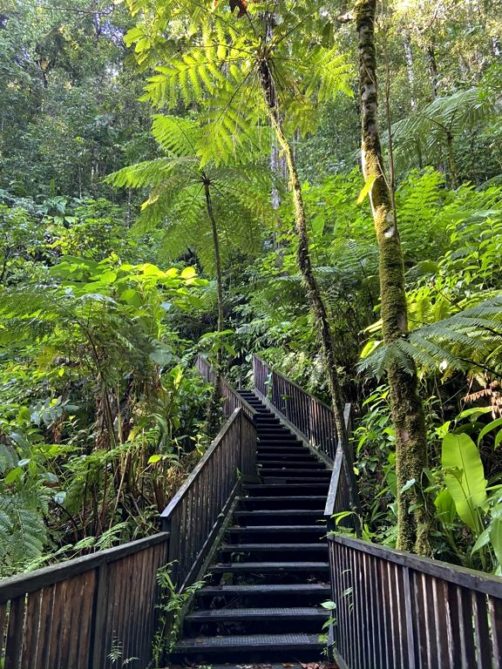 A la Maison de la Forêt, il est possible de faire une balade (très facile à nouveau) à la découverte de la végétation hygrophile du parc national de Guadeloupe, et qui commence par un pont suspendu plutôt photogénique ! D’autres sentiers plus longs partent aussi d’ici.