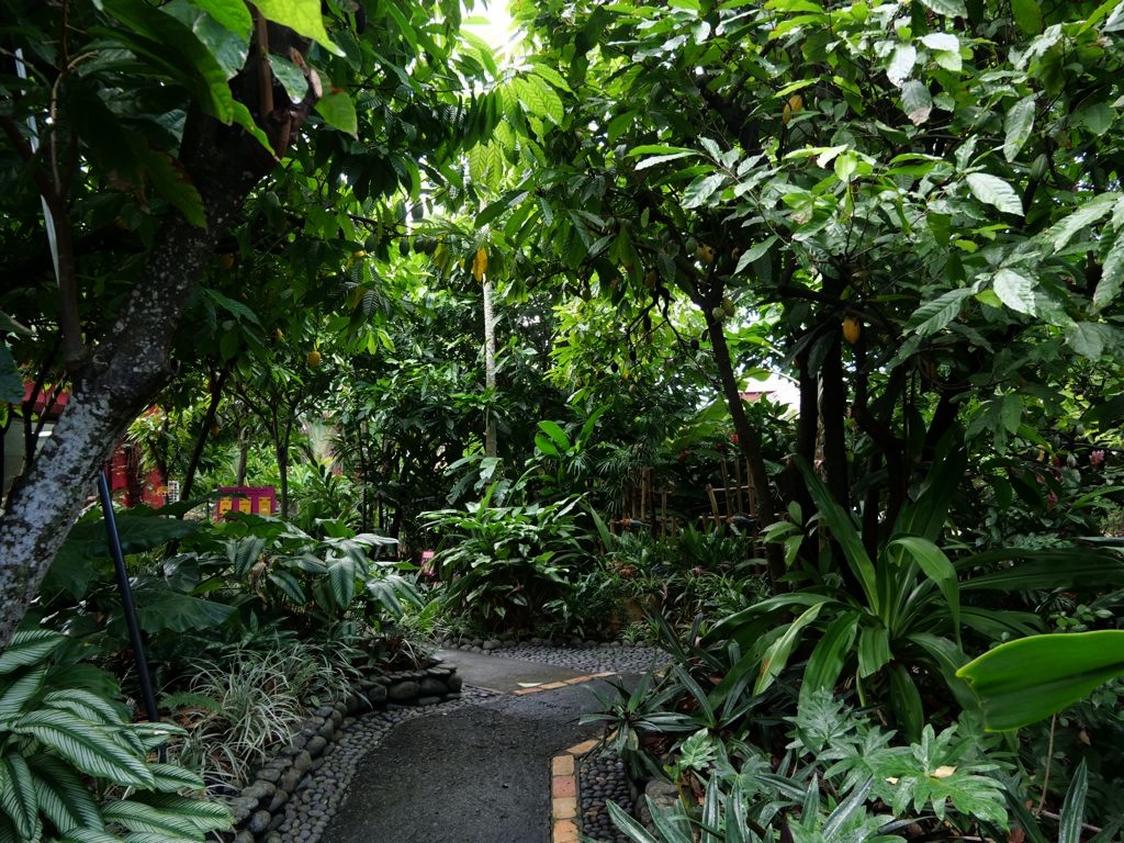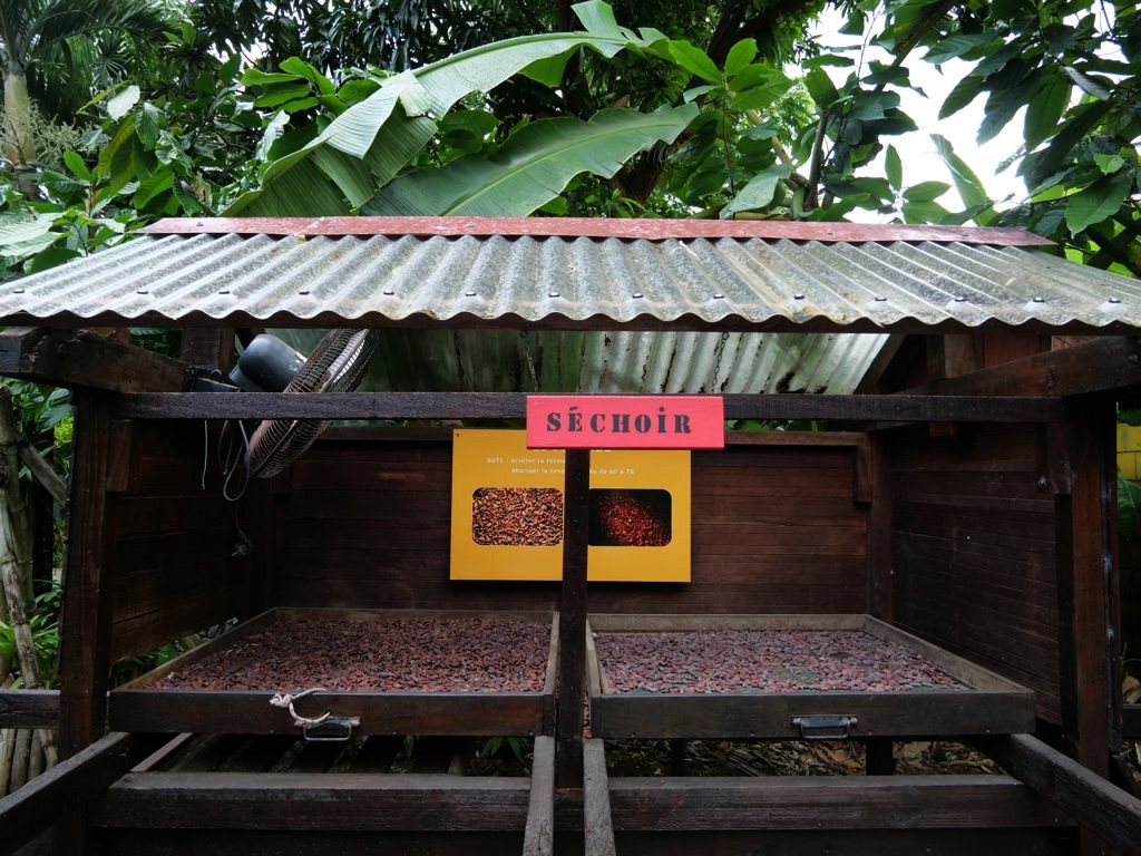 Après avoir parcouru la Route de la Traversée, notre premier arrêt sur la côte sous-le-vent fut la Maison du Cacao à Pointe-Noire, un chouette endroit pour en apprendre plus sur le cacao et le chocolat. La visite commence par une dégustation commentée qui permet de découvrir en pratique comment le cacao est transformé en chocolat. On peut ensuite se balader librement dans un jardin tropical rempli de différentes sortes de cacaotiers. Une visite sympathique à faire en famille !