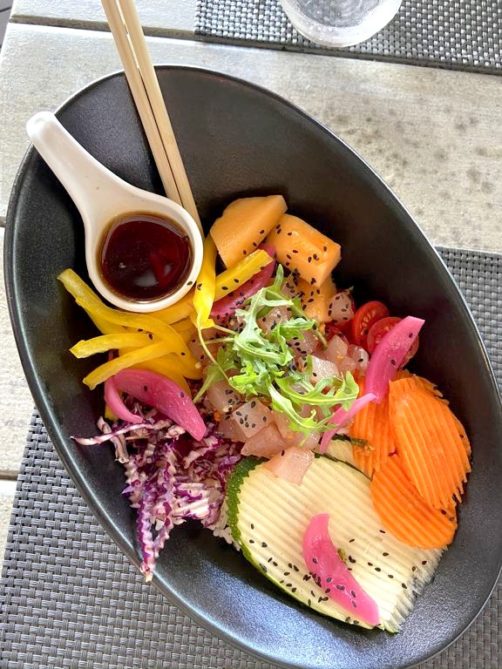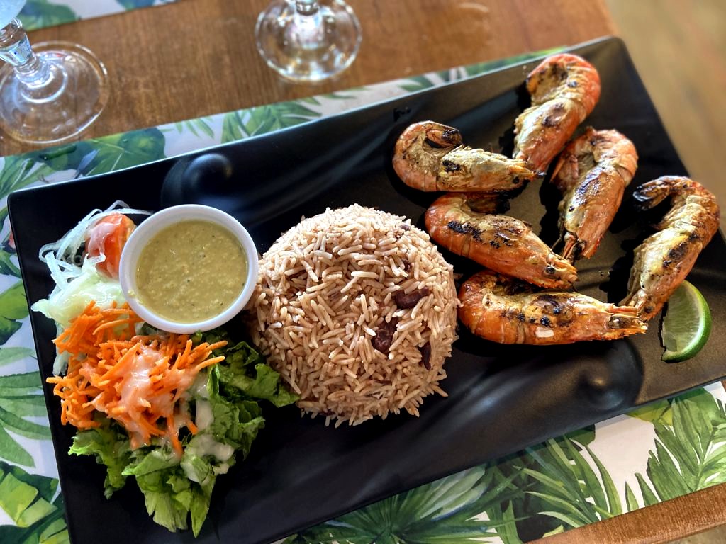 Au retour de notre excursion au Grand Cul-de-Sac Marin, nous avons mangé juste à côté de l’embarcadère à la marina du Gosier au restaurant le Jiss. On est ici plus dans de la cuisine du monde (avec poke bowl, assiettes asiatique et compagnie) que dans la cuisine créole pure, mais nous y avons également très bien mangé.