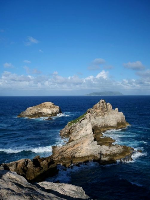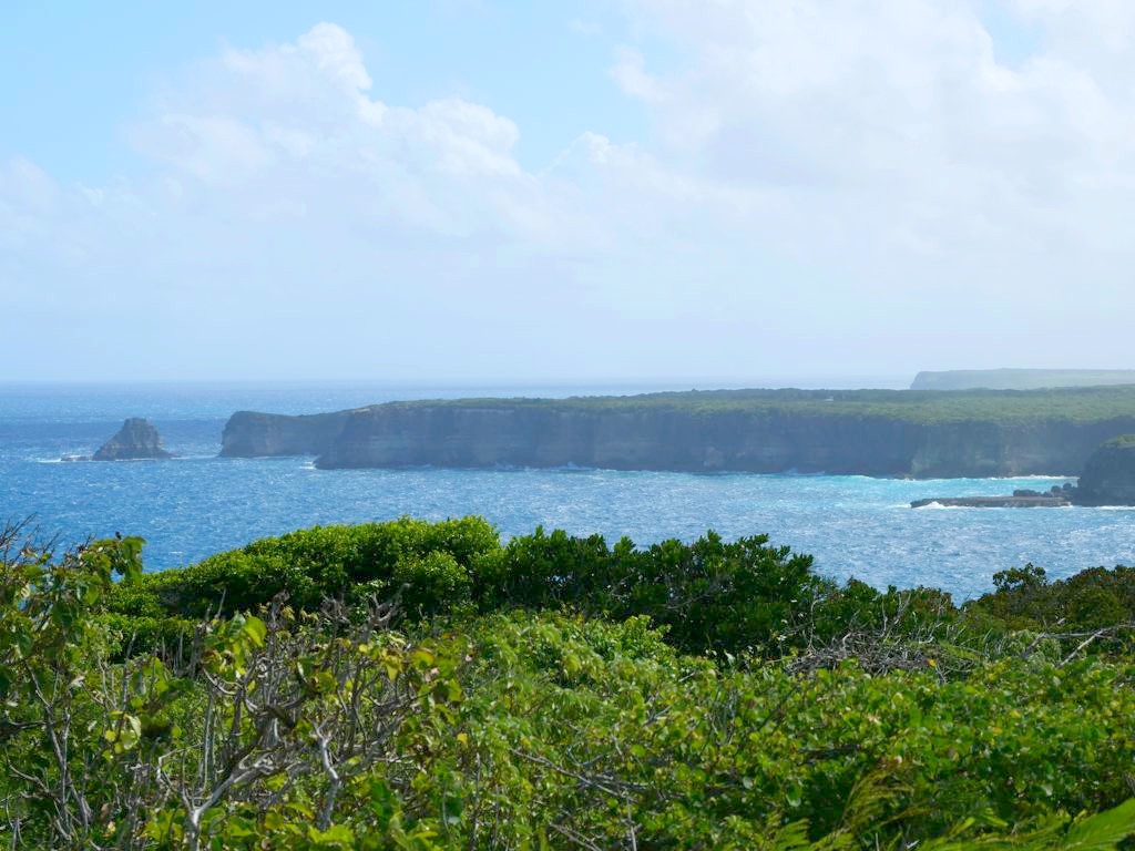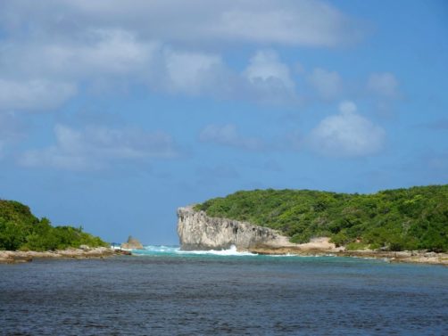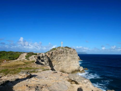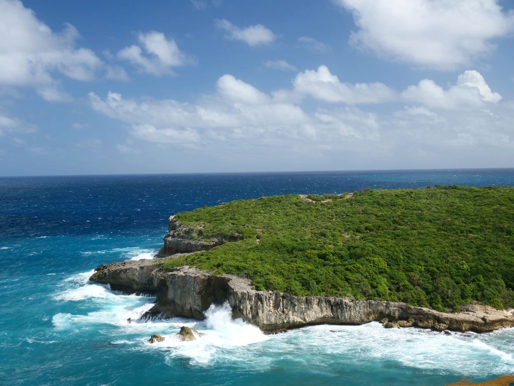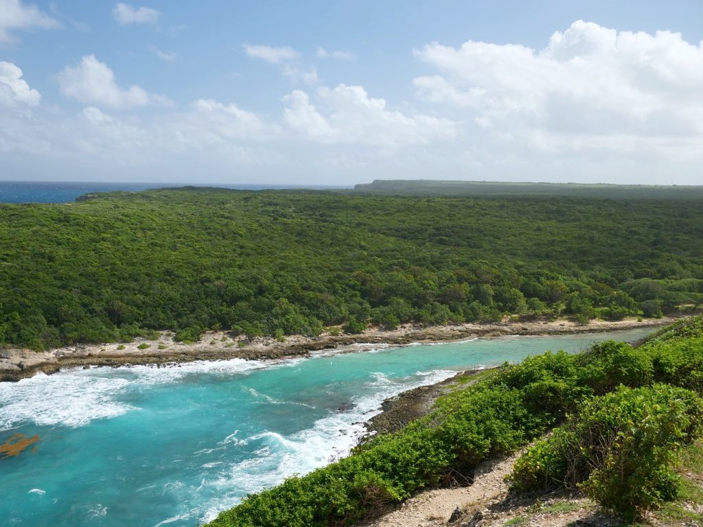 Tout au nord de Grande-Terre se trouve un site naturel impressionnant, la Pointe de la Grande Vigie, de hautes falaises qui offrent de beaux points de vue sur Grande-Terre et juste à côté sur la Pointe Petite Tortue (qui doit son nom à sa forme – vous la voyez la tortue ?). Un premier point de vue se trouve juste à côté du parking, mais vous pouvez emprunter un petit sentier pour aller jusqu’au bout de la pointe.
