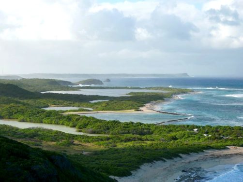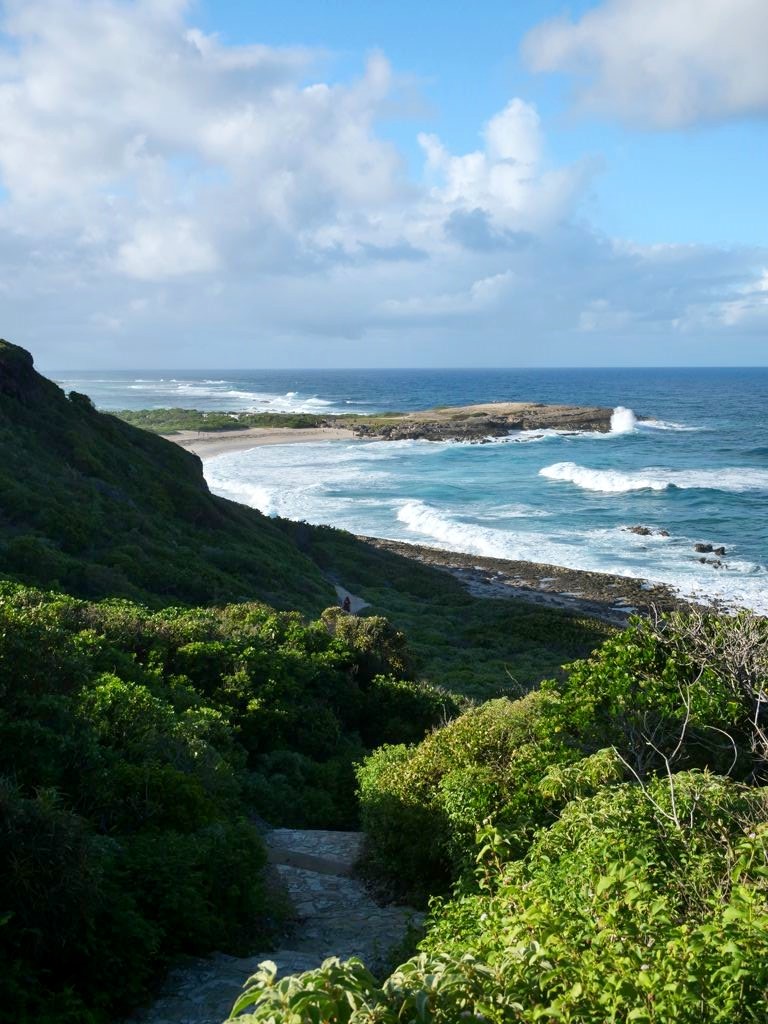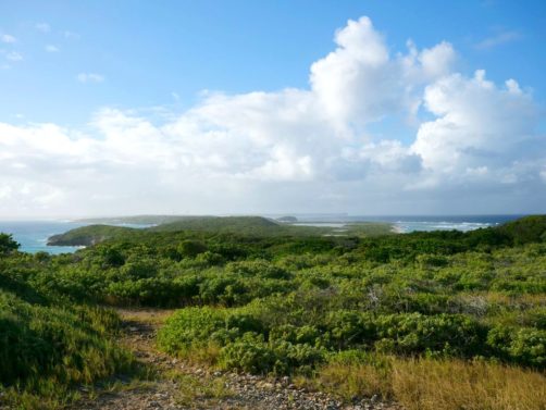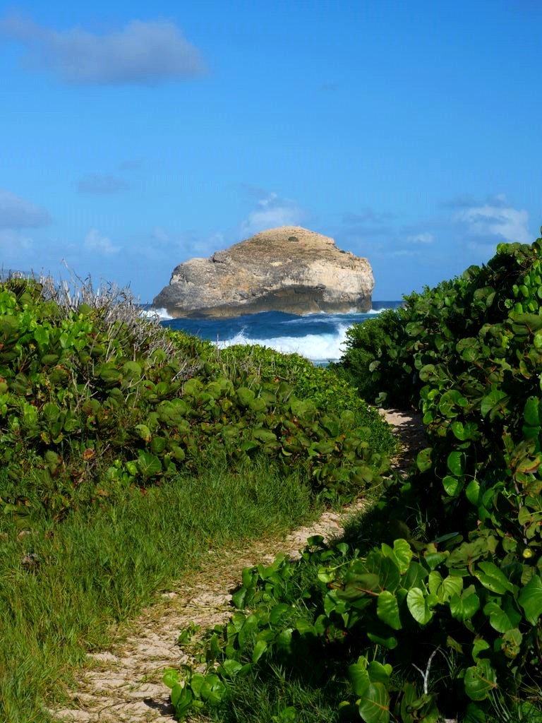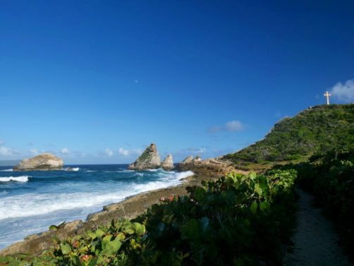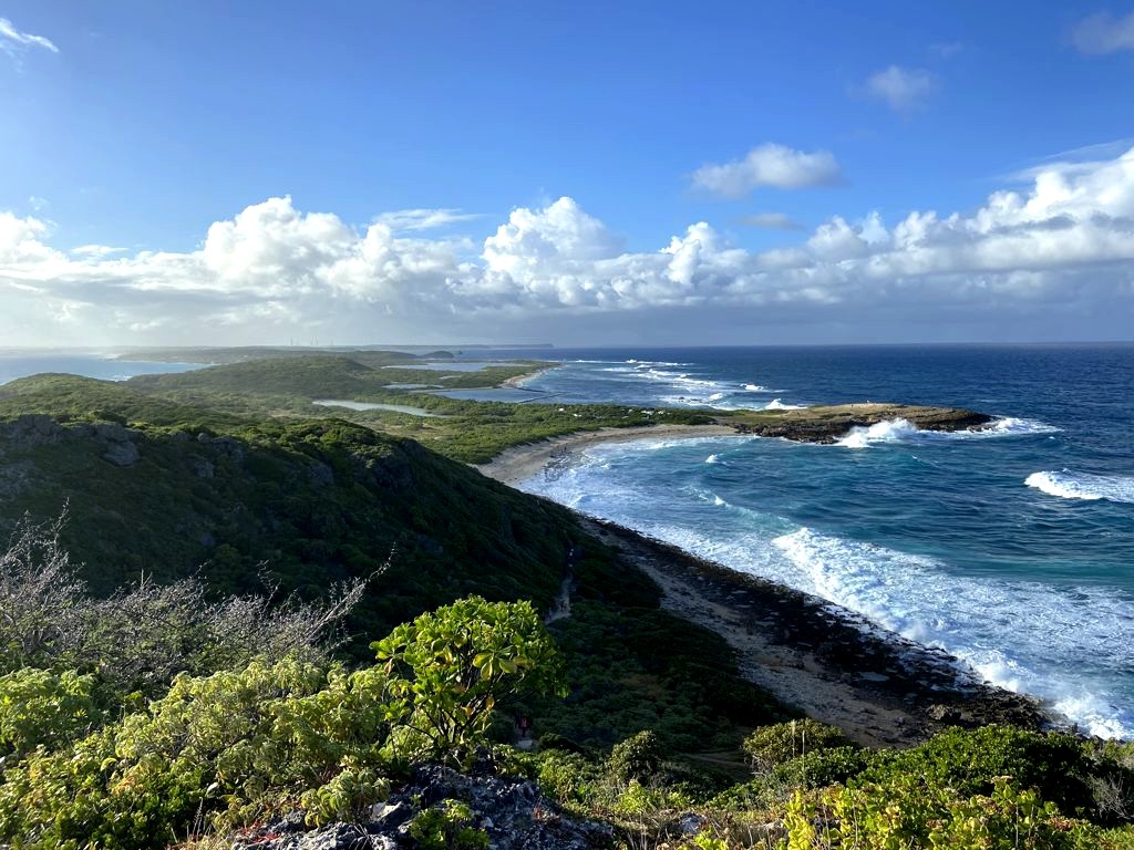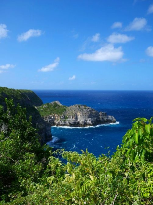 Tout au nord de Grande-Terre se trouve un site naturel impressionnant, la Pointe de la Grande Vigie, de hautes falaises qui offrent de beaux points de vue sur Grande-Terre et juste à côté sur la Pointe Petite Tortue (qui doit son nom à sa forme – vous la voyez la tortue ?). Un premier point de vue se trouve juste à côté du parking, mais vous pouvez emprunter un petit sentier pour aller jusqu’au bout de la pointe.