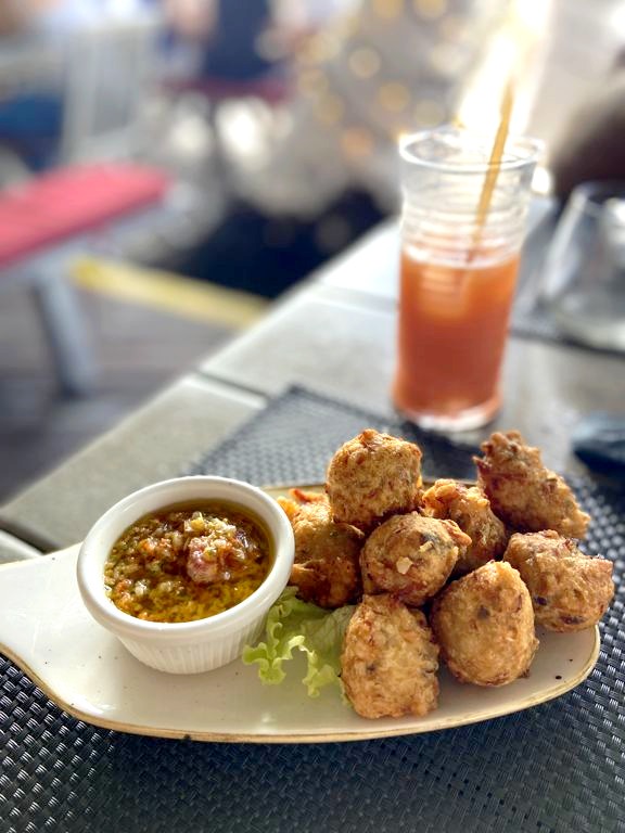 Accras, poissons et fruits de mer, punch exotique, le tout avec « All I want for Christmas » de Maria Carey qui passe en boucle : c’est comme ça que nous avons passé notre lunch du 25 décembre à Saint-François au Refuge du Port. Ce petit restaurant de cuisine locale propose un très bon rapport qualité-prix. C’est une bonne option si vous ne voulez pas faire la file au très populaire restaurant Les Pieds dans l’Eau pas loin de là.