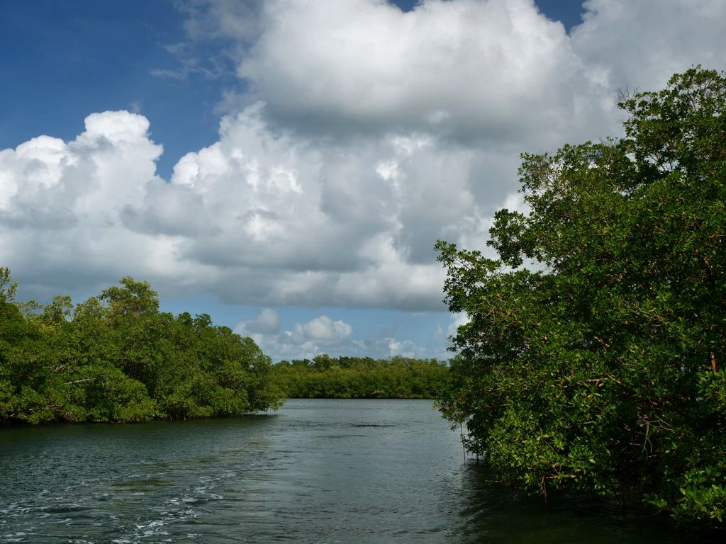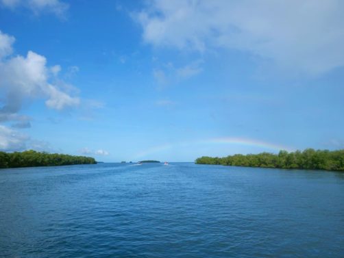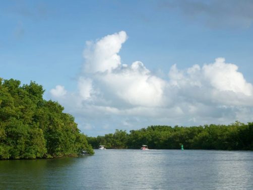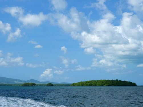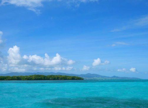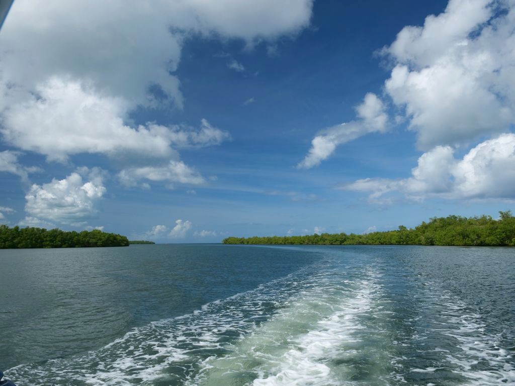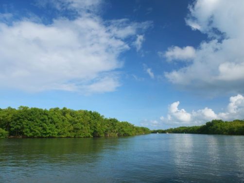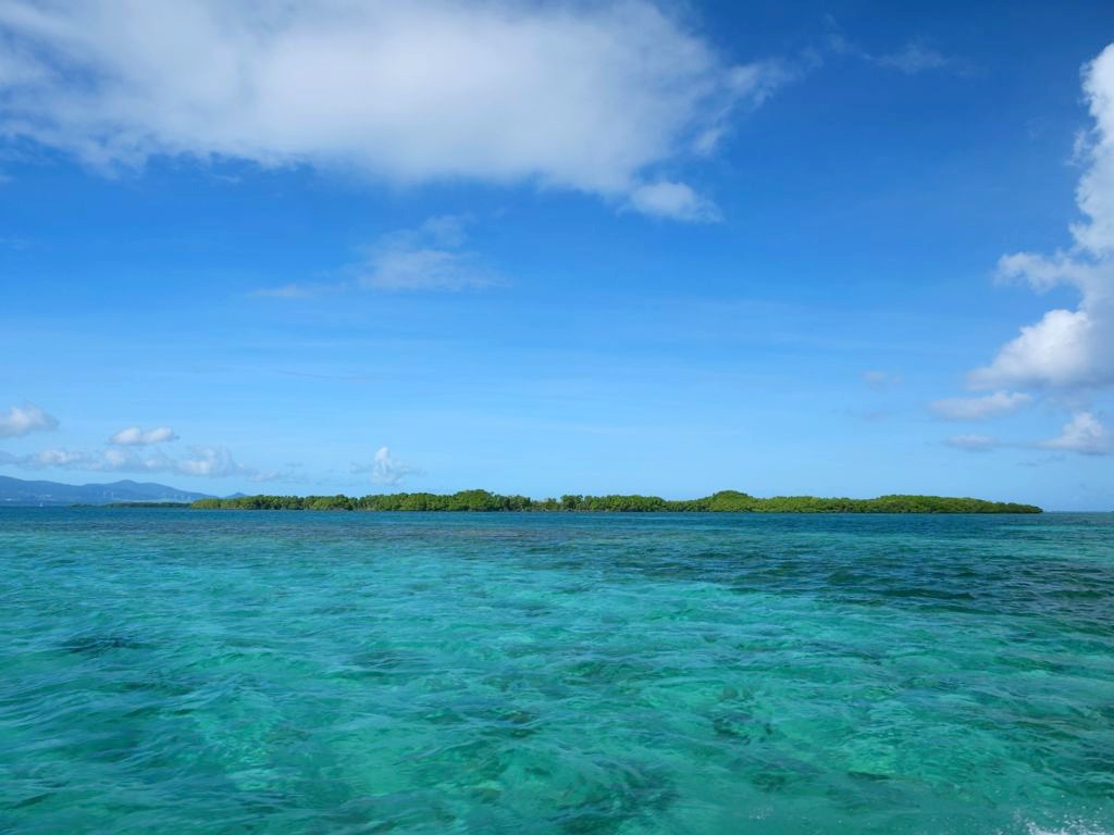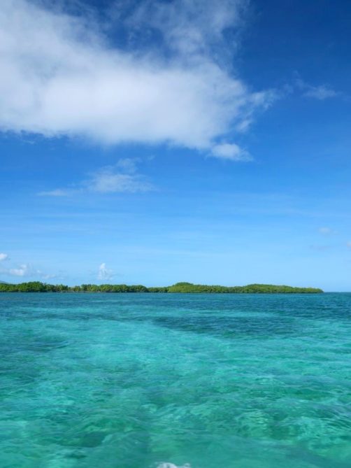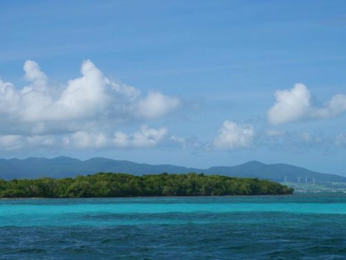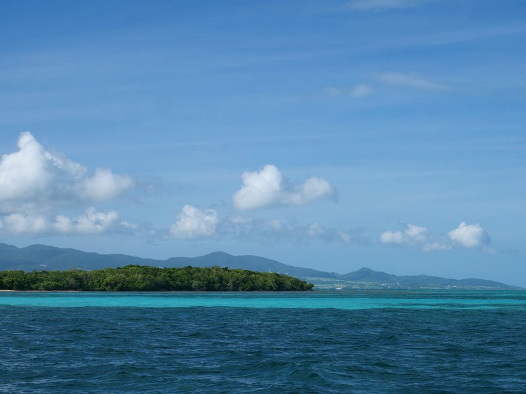 Cette excursion très bien organisée nous a permis de découvrir la mangrove de la Rivière Salée, le bras de mer naturel qui sépare Basse-Terre et Grande-Terre et qui mène au Grand Cul-de-Sac Marin depuis Le Gosier (c’est l’intérêt de partir de là), puis d’explorer le lagon aux 1001 nuances de bleu en trois arrêts.