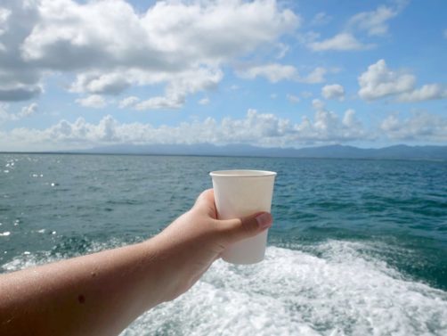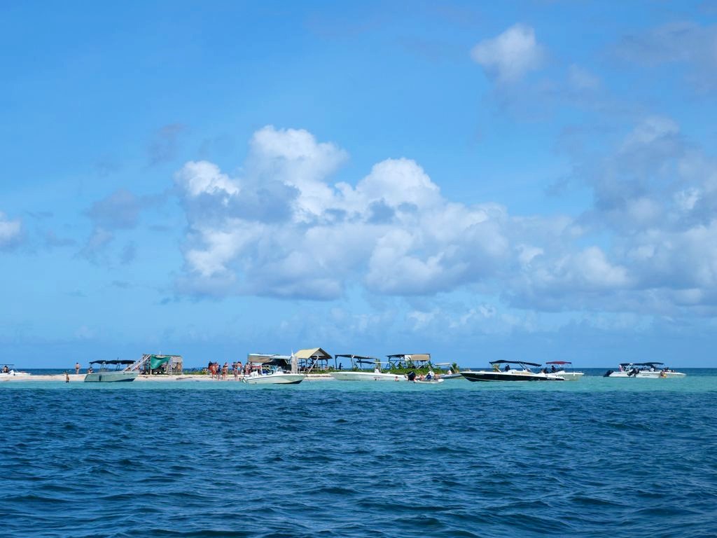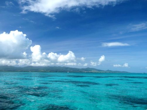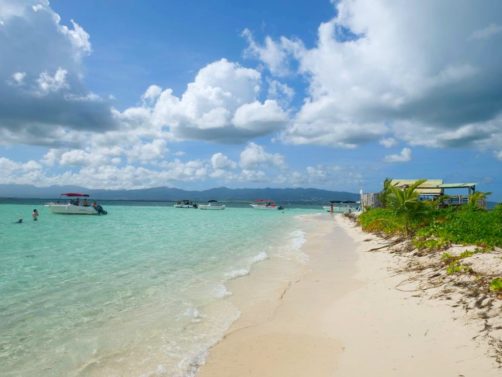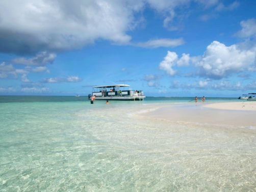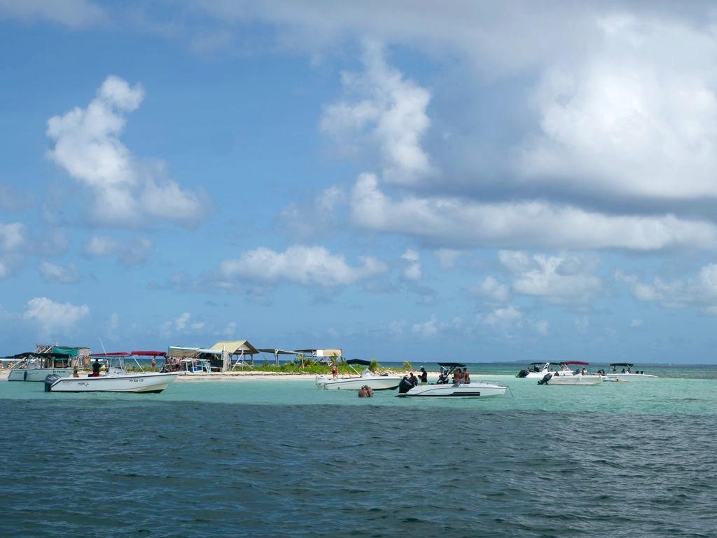 Ensuite, nous sommes remontés dans le bateau jusqu’à l’Ilet Caret, un petit banc de sable blanc… très fréquenté ! Ce petit ilet entouré d’un lagon d’eau turquoise a beaucoup rétréci ces dernières années, mais des palmiers ont été replantés dans l’espoir de remédier à cette situation. Malgré tout, le cadre est sympa pour déguster un petit punch.