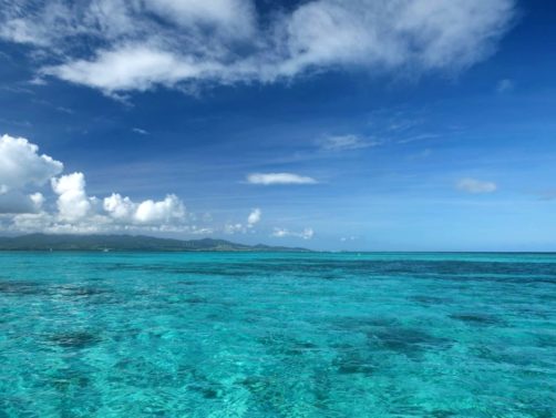 Nous avons commencé notre découverte du Grand Cul-de-Sac Marin par une randonnée palmée, un parcours guidé en snorkeling de 40 minutes (palmes et masques désinfectés fournis). J’ai trouvé le concept plutôt sympa, au lieu de simplement nous déposer à un endroit et nous laisser explorer par nous-mêmes. L’eau était vraiment translucide et même si l’état du corail n’est pas topissime, on a pu voir de nombreuses espèces de poissons. J’ai trouvé la balade vraiment cool !