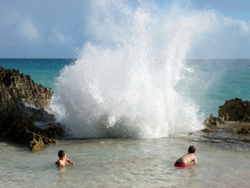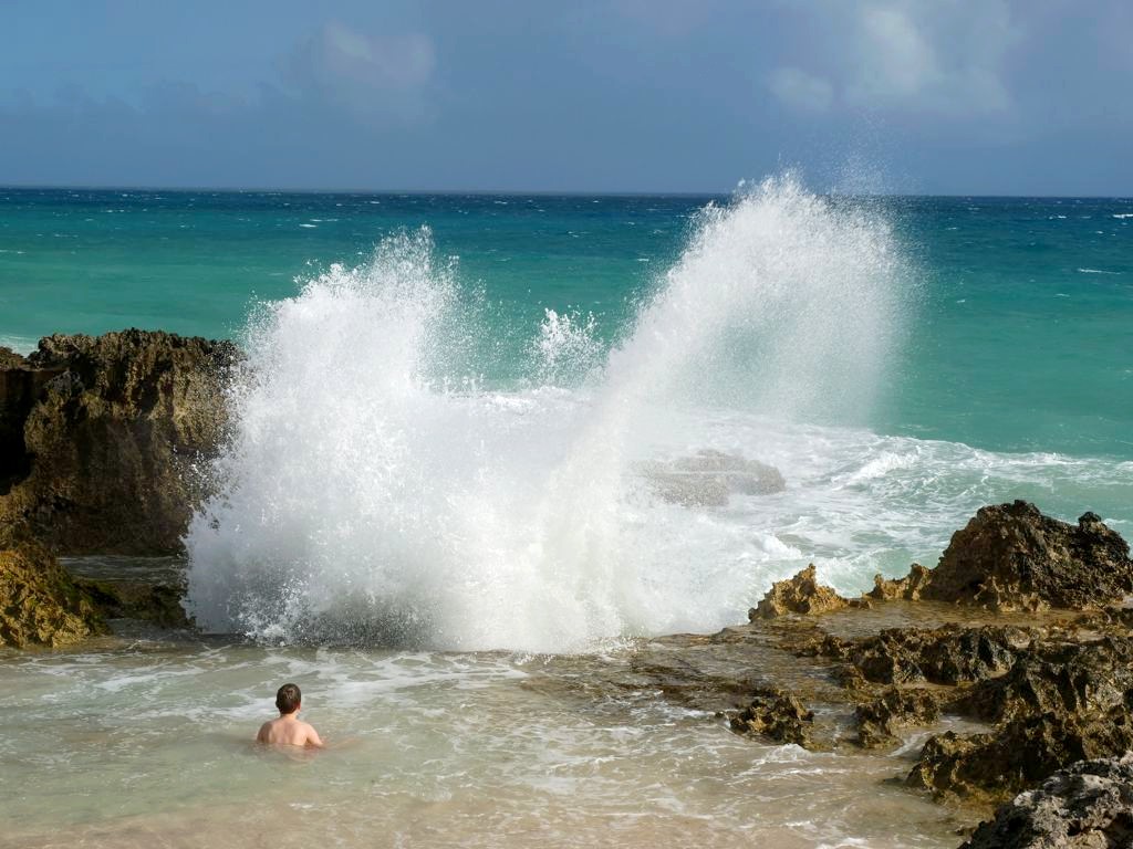 Sur la route qui mène à la Pointe des Châteaux, ne manquez pas de vous arrêter à « La Douche ». Vous comprendrez vite le pourquoi du nom : il s’agit d’un petit bassin naturel sur lequel les vagues viennent se fracasser, vous arrosant au passage comme si vous preniez votre douche ! Si jusqu’à il y a quelques années, cet endroit était plutôt méconnu, après avoir fait le buzz sur Instagram il est aujourd’hui bien fréquenté – vous y serez difficilement seuls.