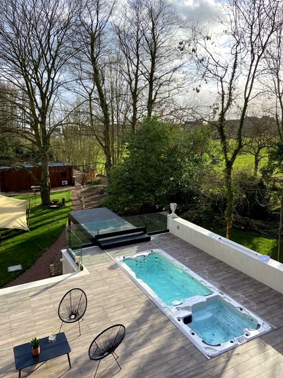 La chambre était petite mais bien agencée, et l’autre gros plus c’est la terrasse de la villa où se trouve un énorme jacuzzi qui fait aussi office de mini espace de nage à contre-courant, accessible à tous les clients de l’hôtel sans supplément. Il est également possible de réserver l’espace Wellness « Le Chalet », au fond du jardin, avec jacuzzi et sauna (en supplément), et le B&B propose également un service de repas, le soir.