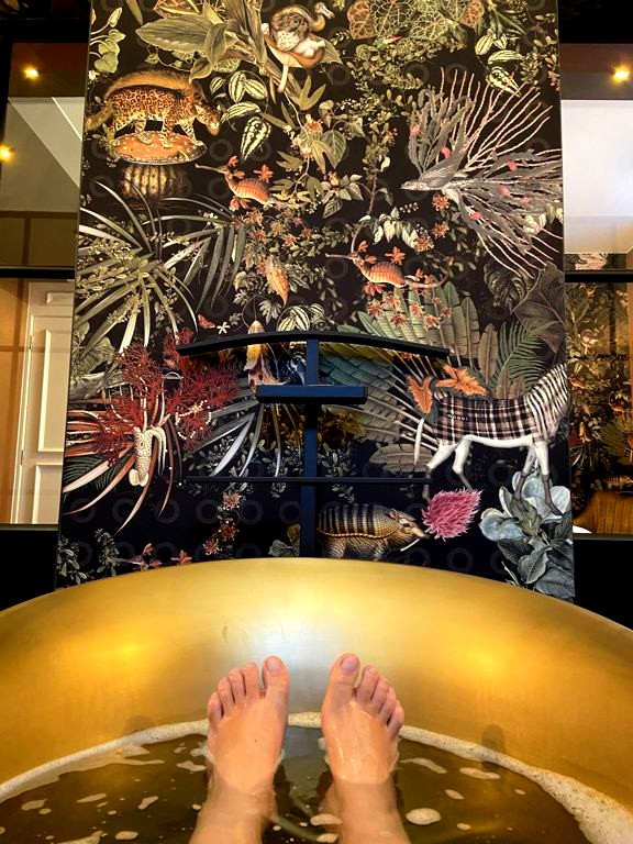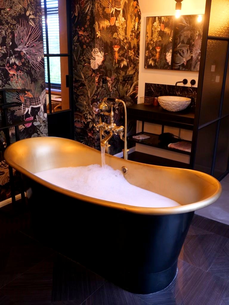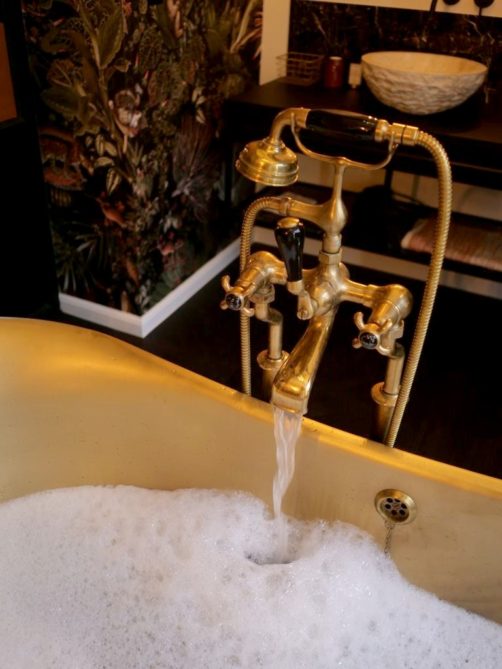 Ce petit boutique hotel possède uniquement 5 chambres, toutes décorées différemment. Nous avons choisi la « chambre Botanique », qui est la seule à avoir une baignoire. Et quelle salle de bain ! Avec son papier peint coloré très original et sa belle baignoire dorée au centre de la pièce, on peut dire que c’est l’endroit parfait pour se déconnecter.