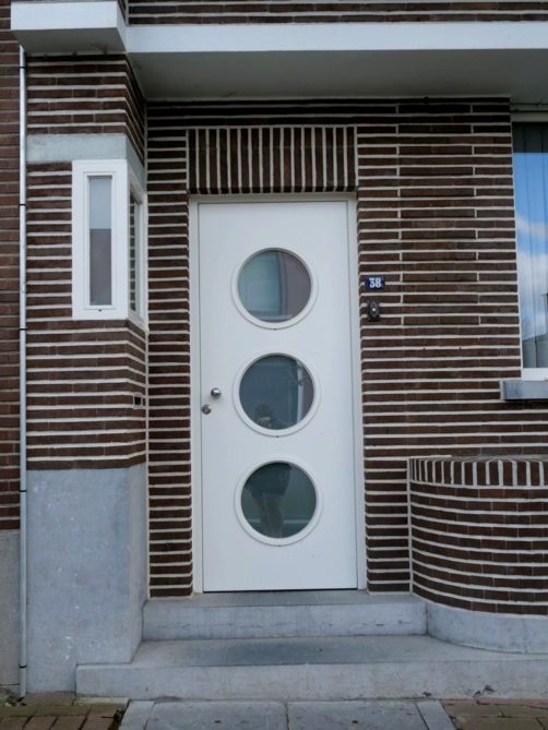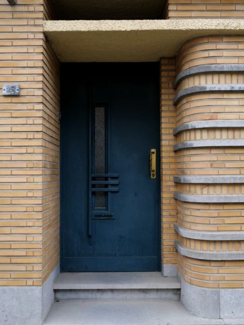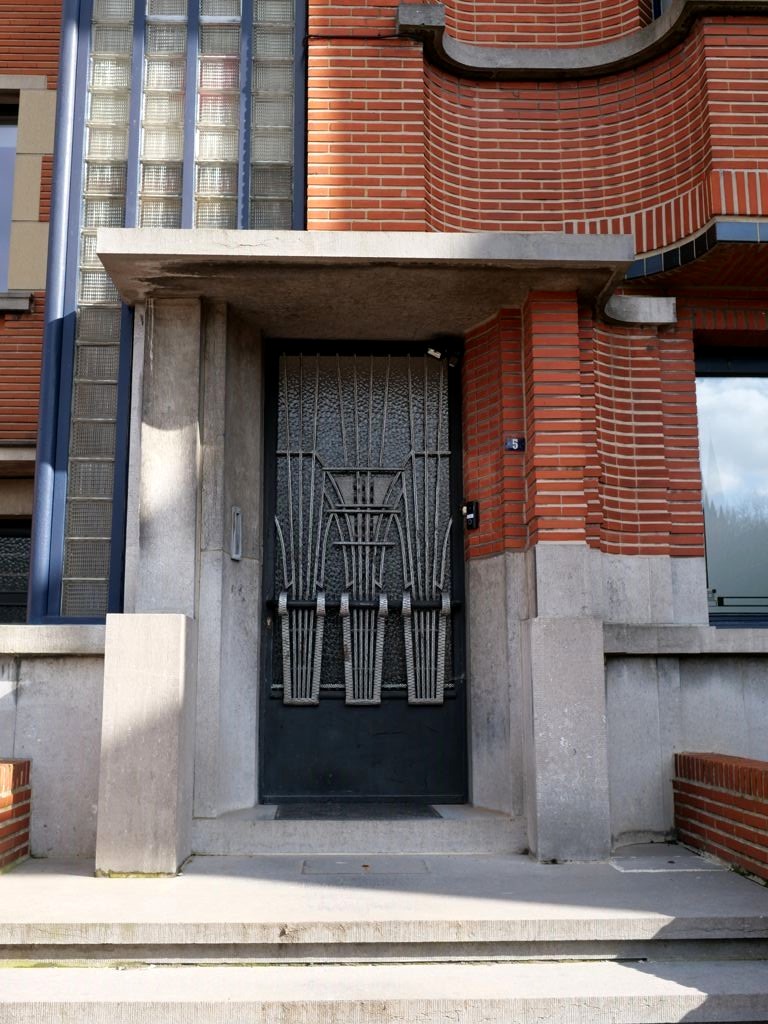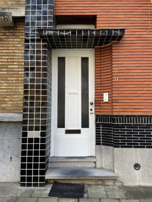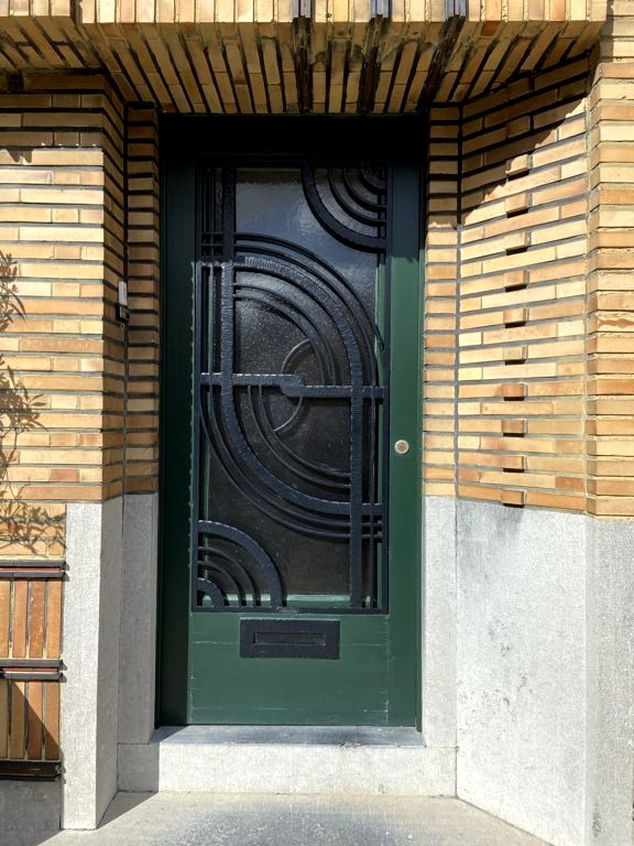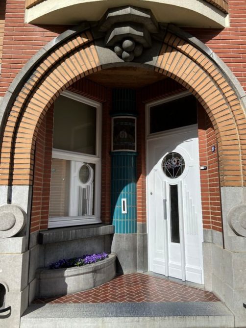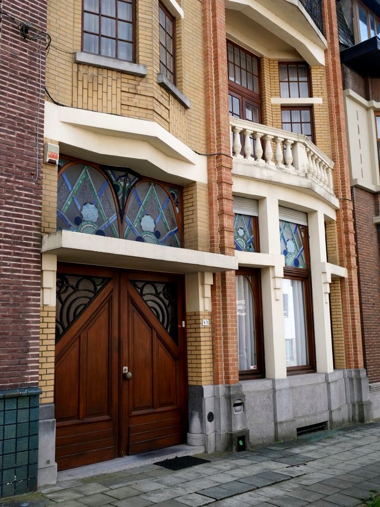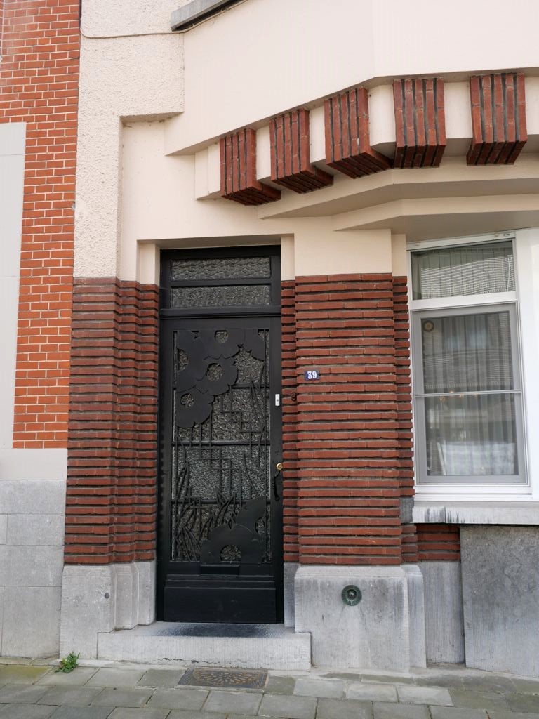 Nous tournons ensuite à droite vers la rue Léopold Sturbaut, qui est véritablement LA rue Art Déco immanquable à Renaix ! Ce lotissement a été réalisé entièrement dans les années 30, ce qui donne un ensemble remarquable. L’aller-retour dans la rue permet d’admirer un côté à la fois. En ce qui me concerne, j’avais envie de prendre en photos toutes les portes !