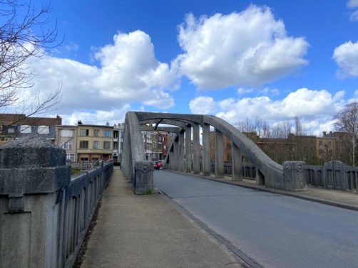 Nous tournons à gauche sur le Boulevard des Fusillés, où les maisons Art Déco se multiplient. Nous passons devant une des anciennes fabriques textiles de la ville, avant d’arriver au Pessemiersbrug datant des années 20, un des premiers ponts en béton de Belgique.