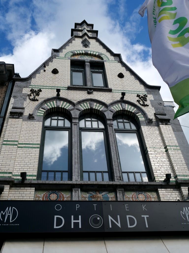 Comme vous vous en rendrez vite compte, l’Art Déco est partout ou presque à Renaix. Pour ceux qui ne connaissent pas bien ce mouvement artistique, l’Art Déco se caractérise (de manière très simplifiée !) par des formes géométriques avec des décorations plus sobres que dans l’Art Nouveau, à qui il succède, et qui était plus dans l’exubérance.